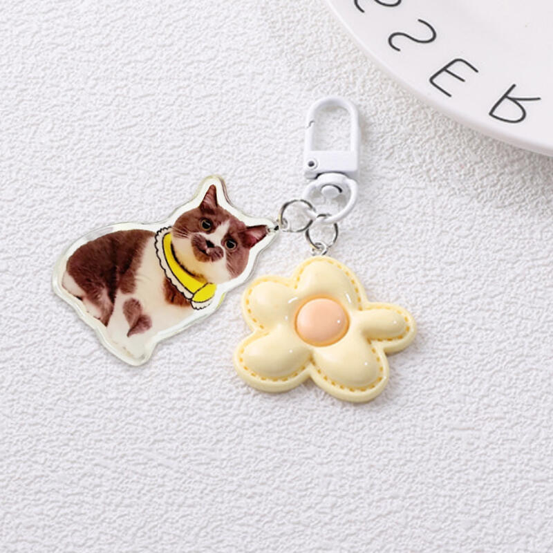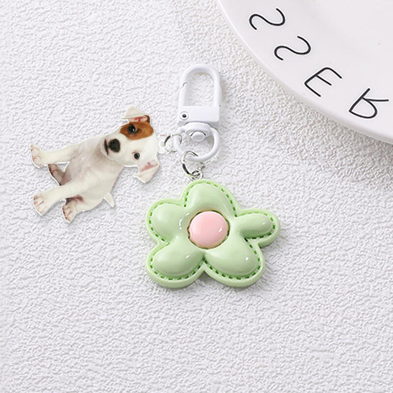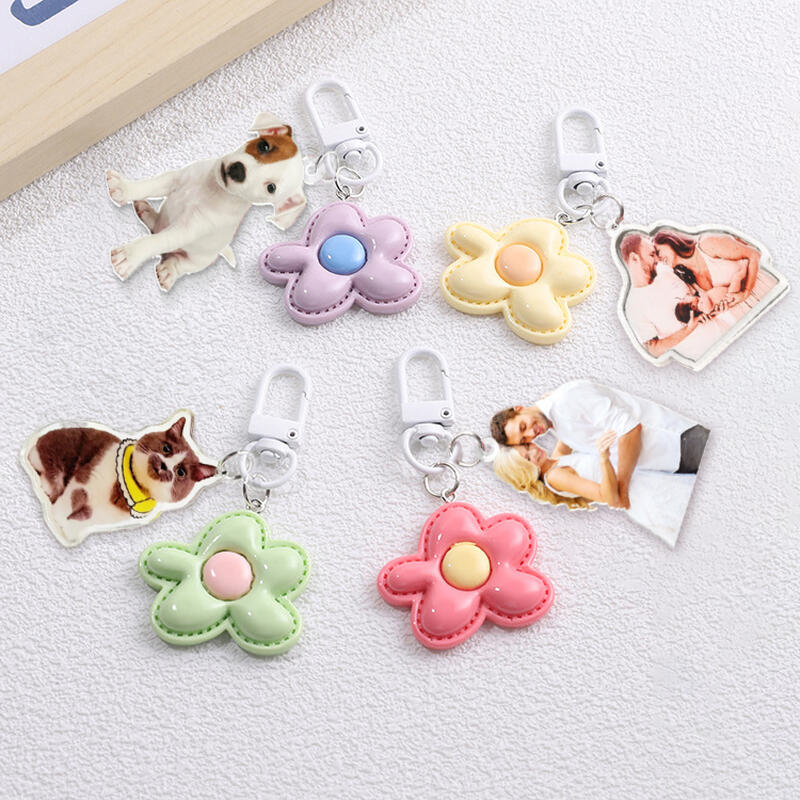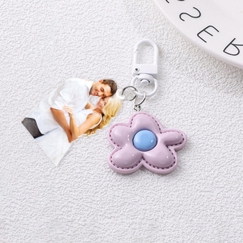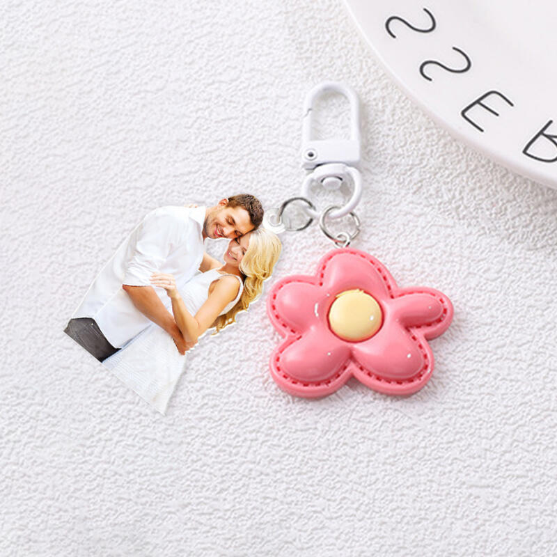 Llavero personalizado con foto de acrílico y decoración de flores, regalo bonito