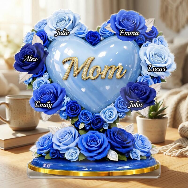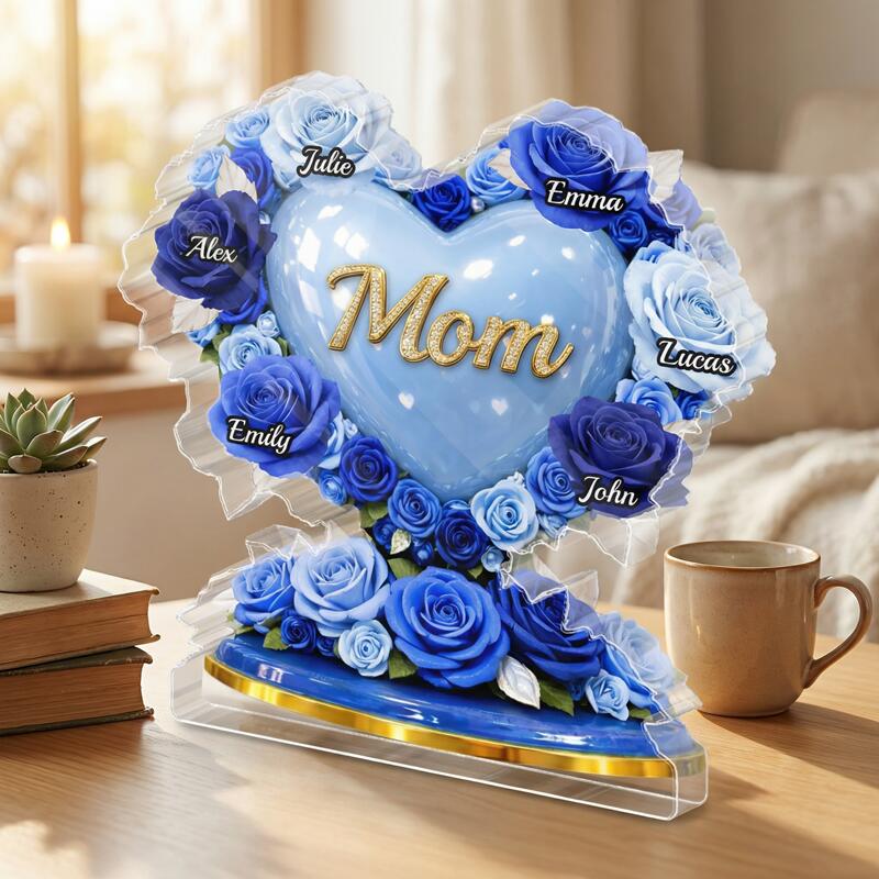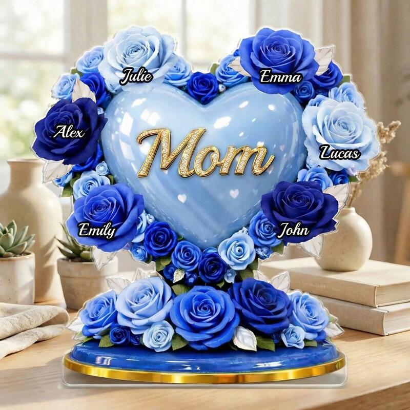 Placa de bloque acrílico personalizada nombres personalizados diseño de soporte de corazón rosa azul regalo encantador para el día de la madre