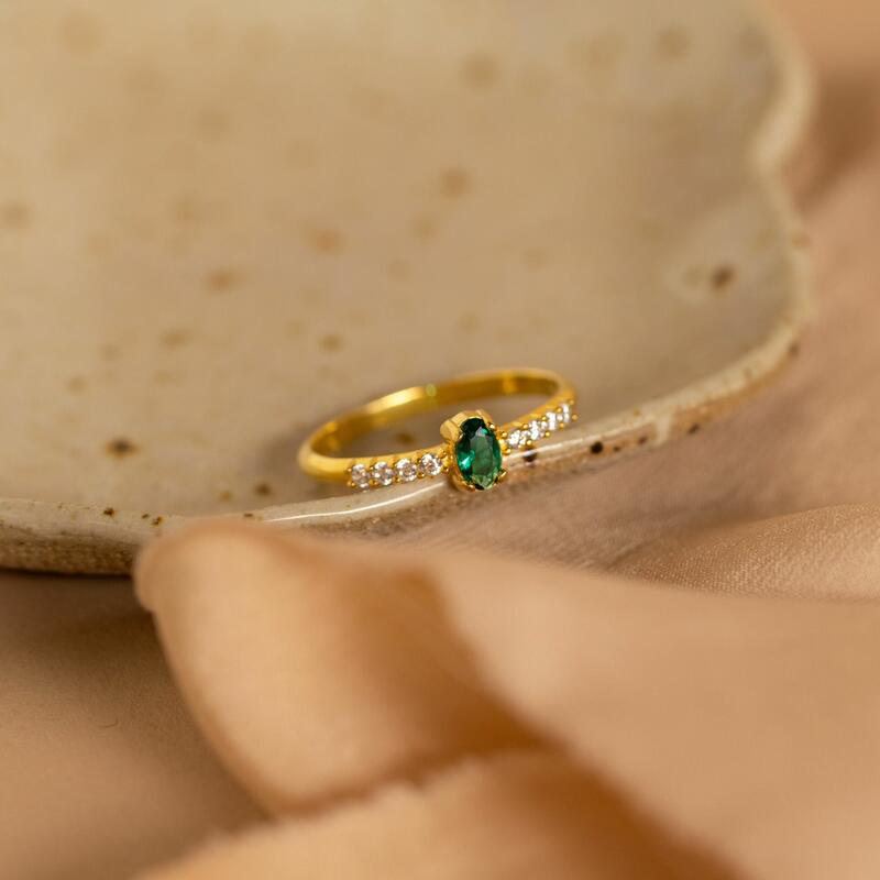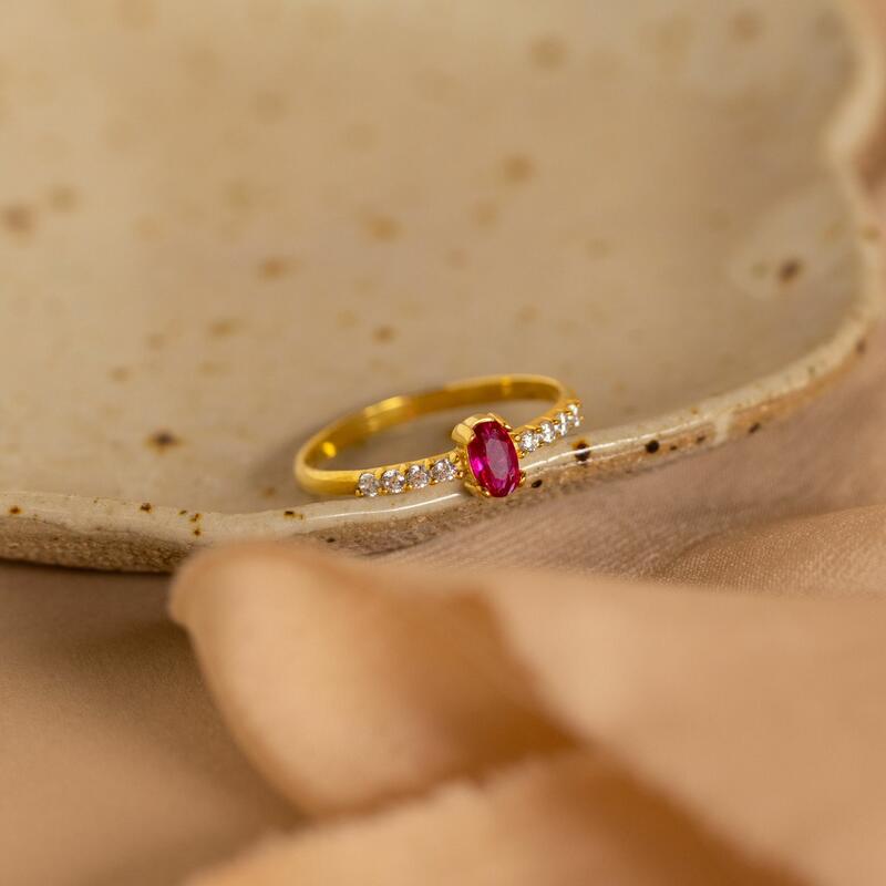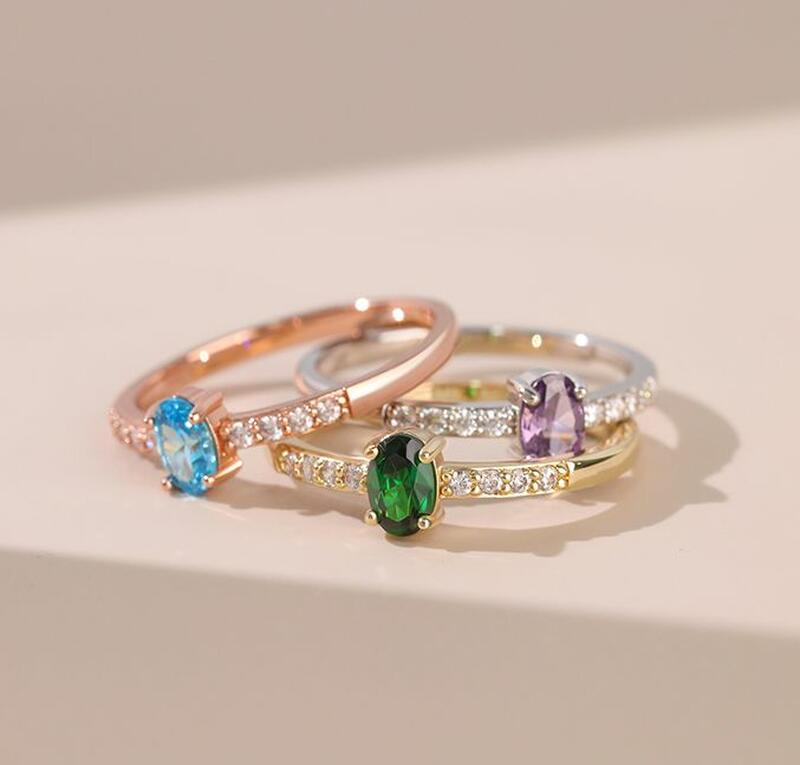 Anillo de piedra de nacimiento personalizado con diamantes. Regalo romántico de San Valentín para tu esposa.