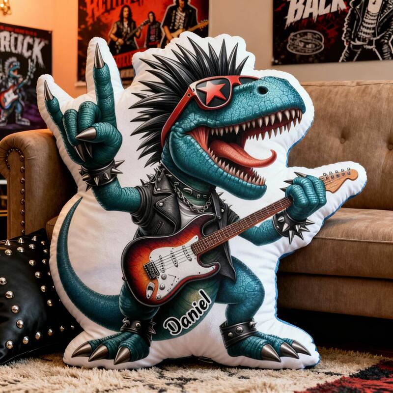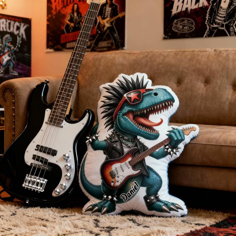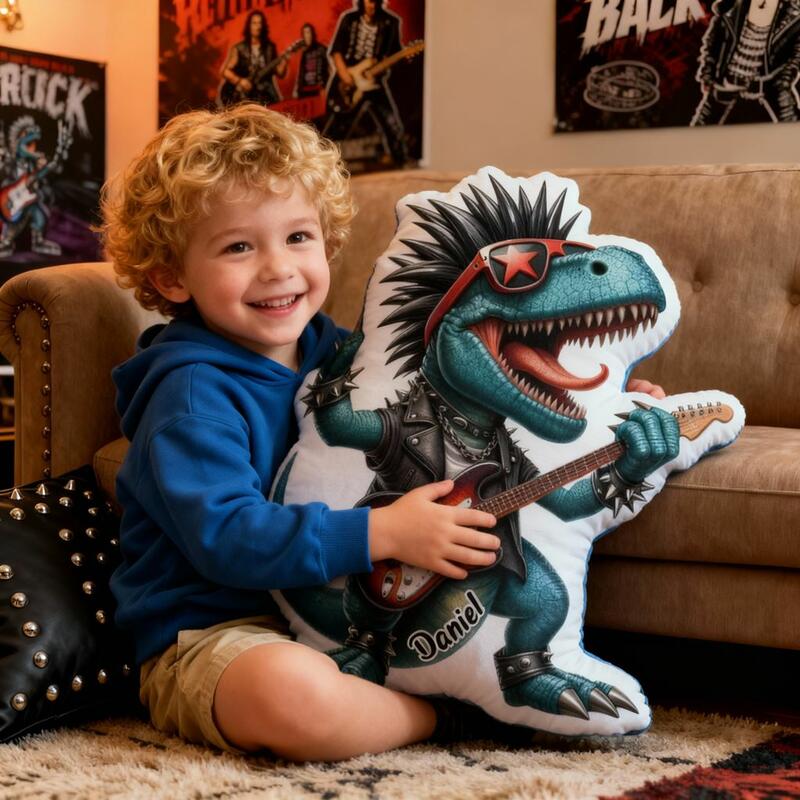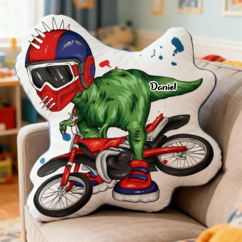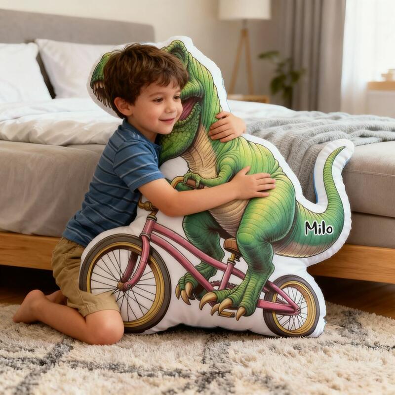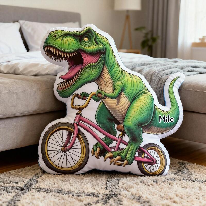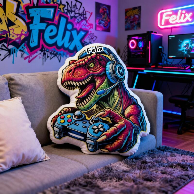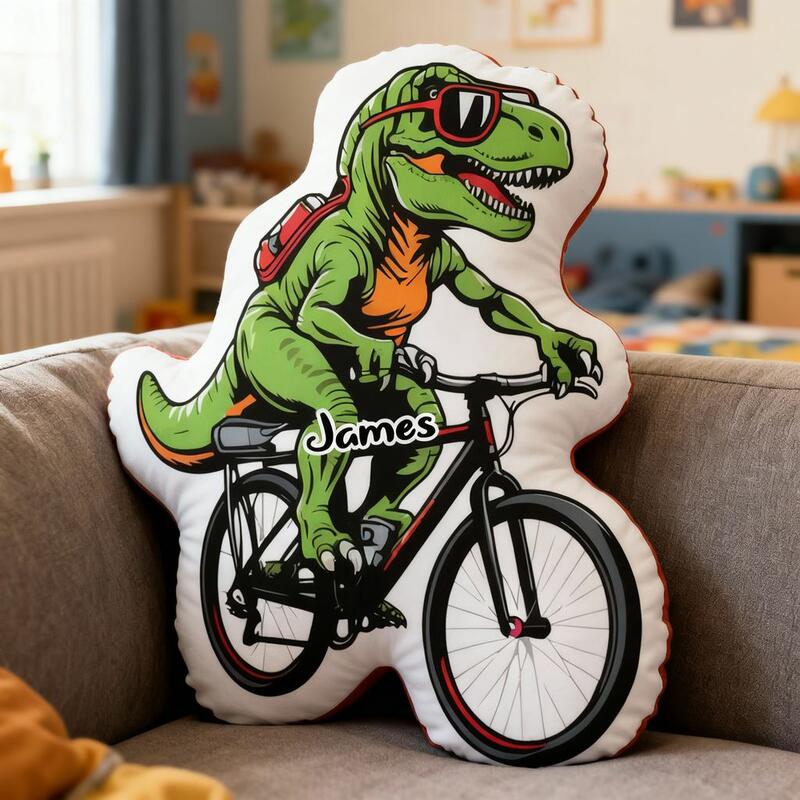 Almohada personalizada de dinosaurio de dibujos animados con nombre personalizable. Regalo de cumpleaños para hijo.