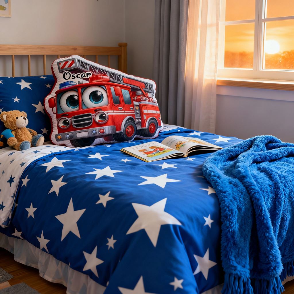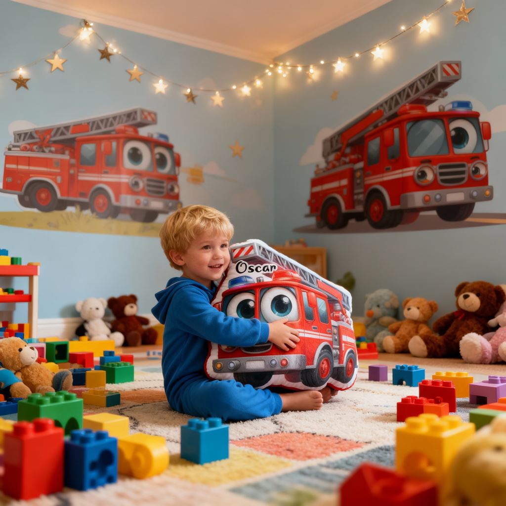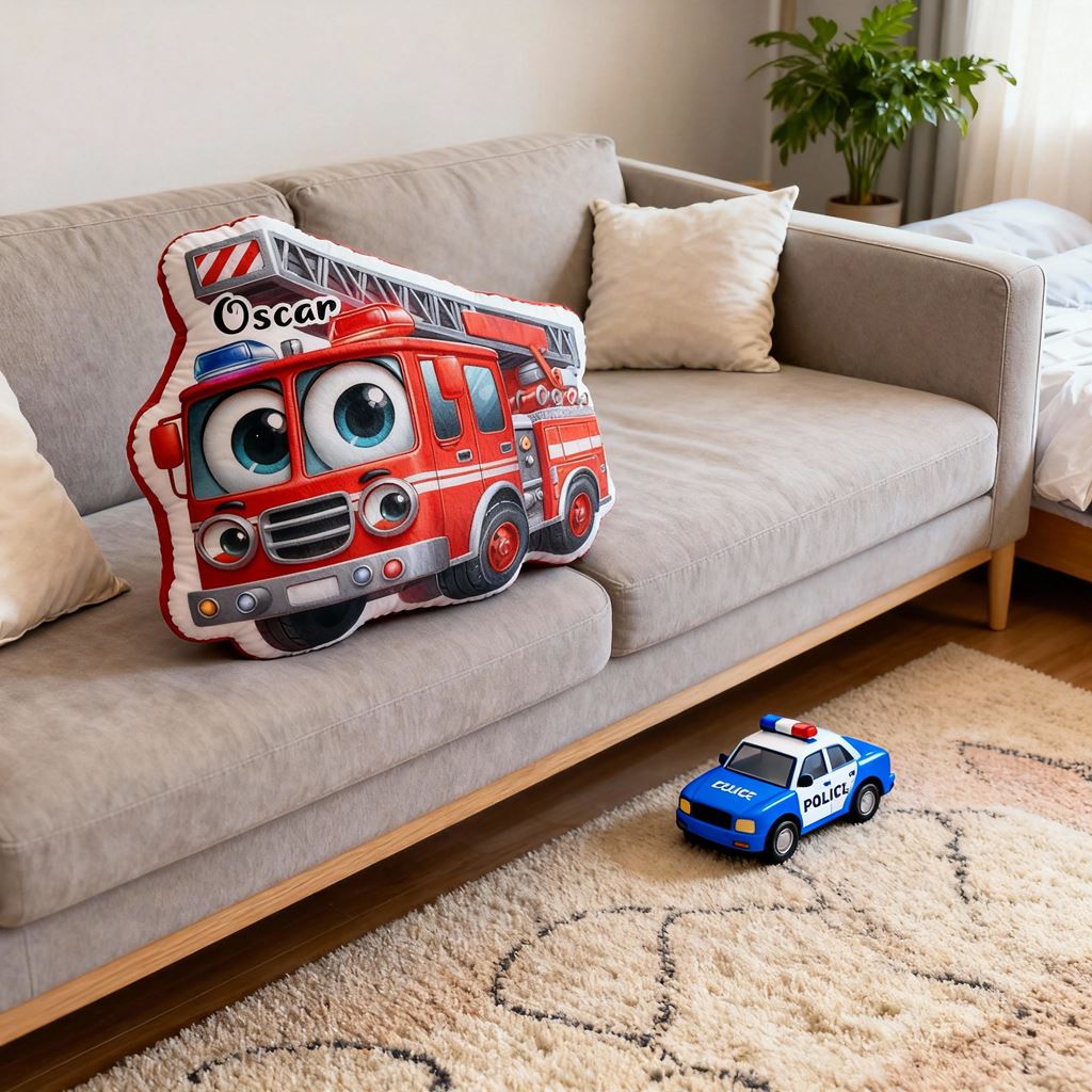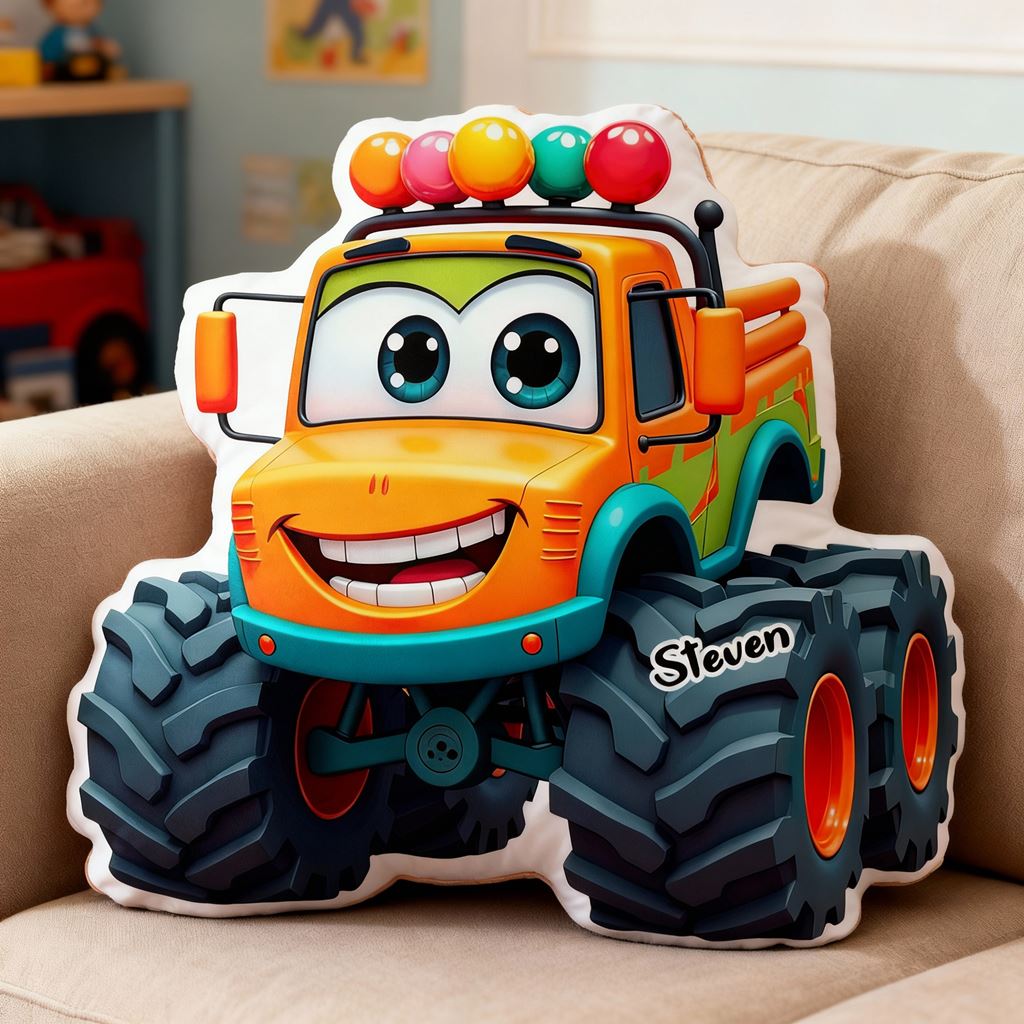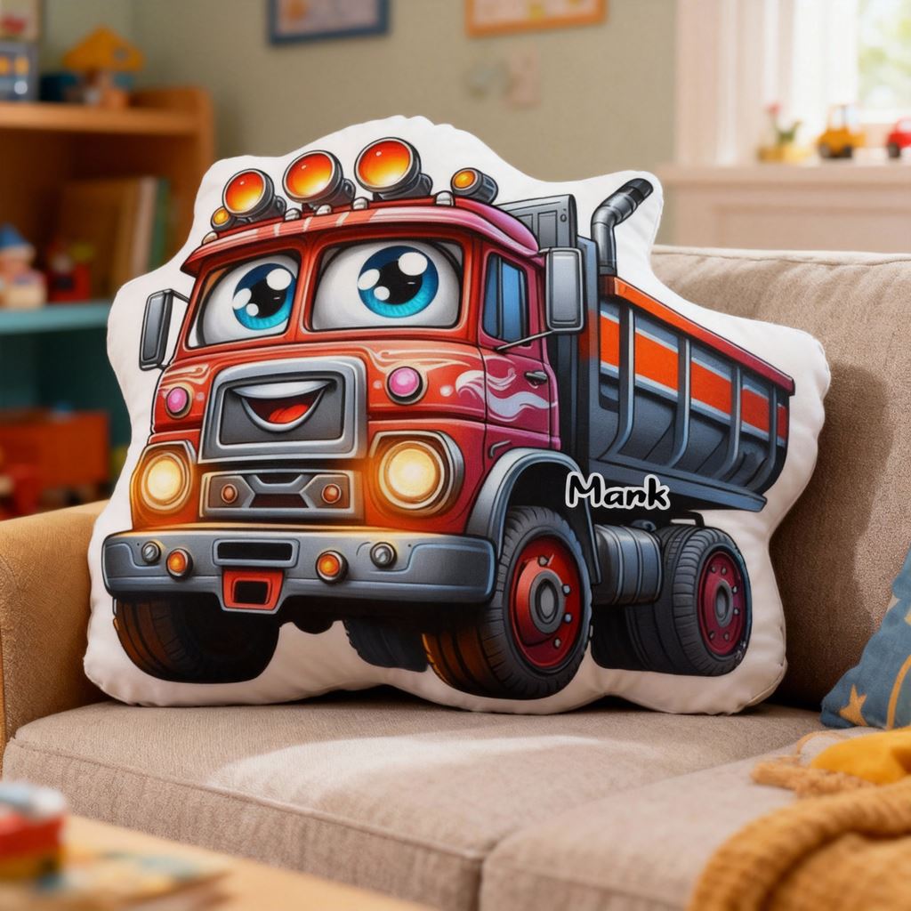 Cojín personalizado con forma de carrito de herramientas y vehículo de cuatro ruedas de dibujos animados. Decoración para la habitación de los niños.