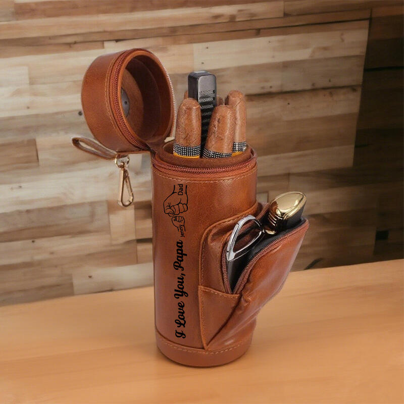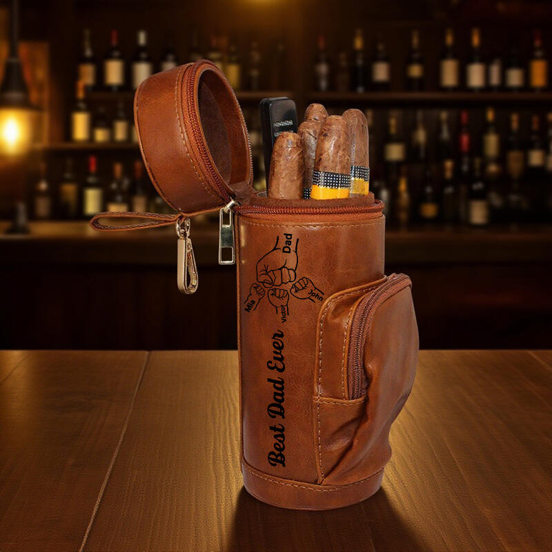 Estuche humidor de puros personalizado con nombres personalizados y diseño de "choque de puños", regalo creativo para papá aficionado a los puros.