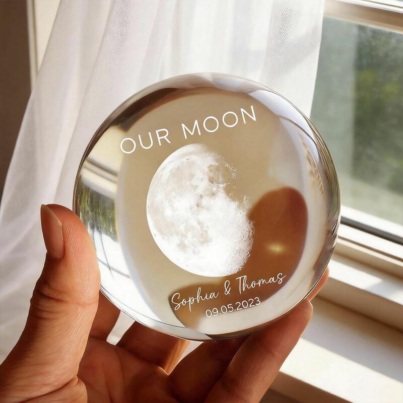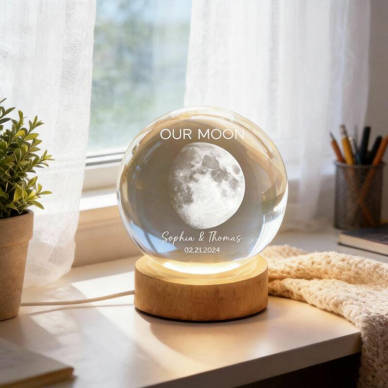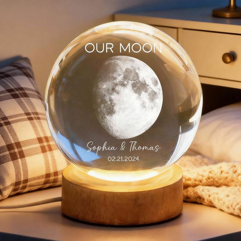 Luz nocturna LED con bola de cristal personalizada nuestro regalo especial de San Valentín para pareja en el Día de la Luna