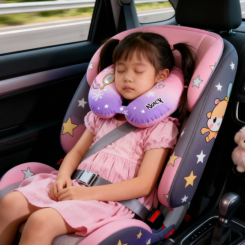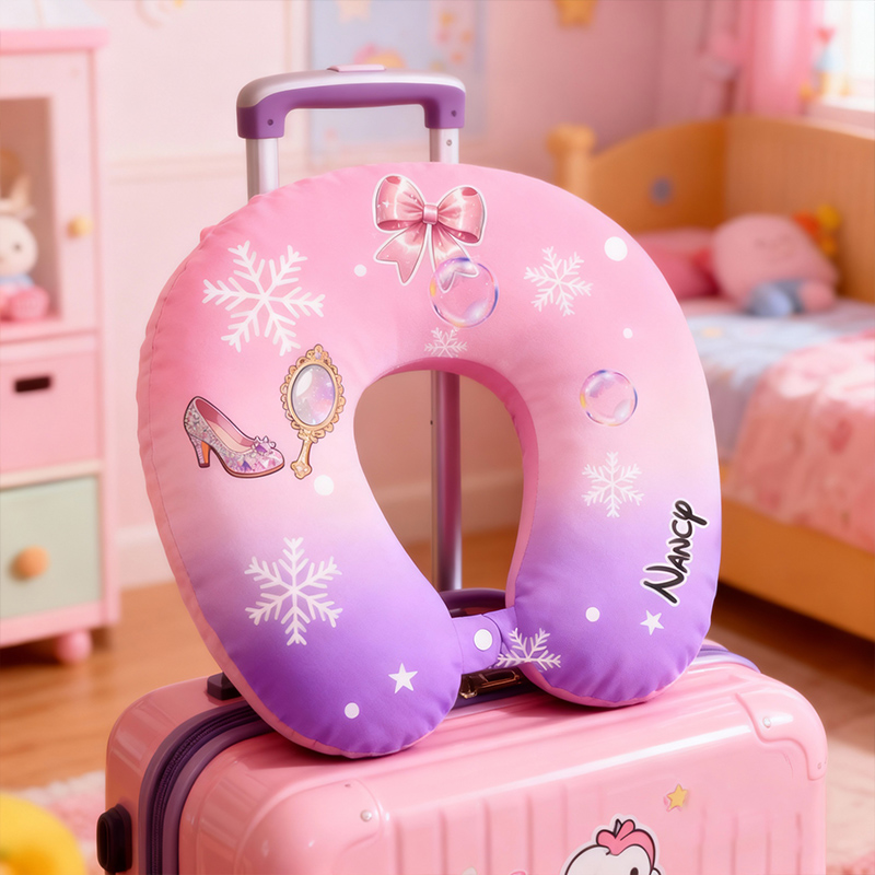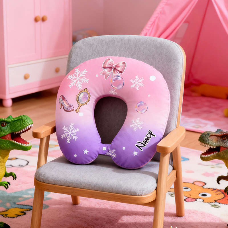 Almohada en forma de U con diseño de lazo de cristal personalizado, nombre personalizable, regalo de viaje para niñas