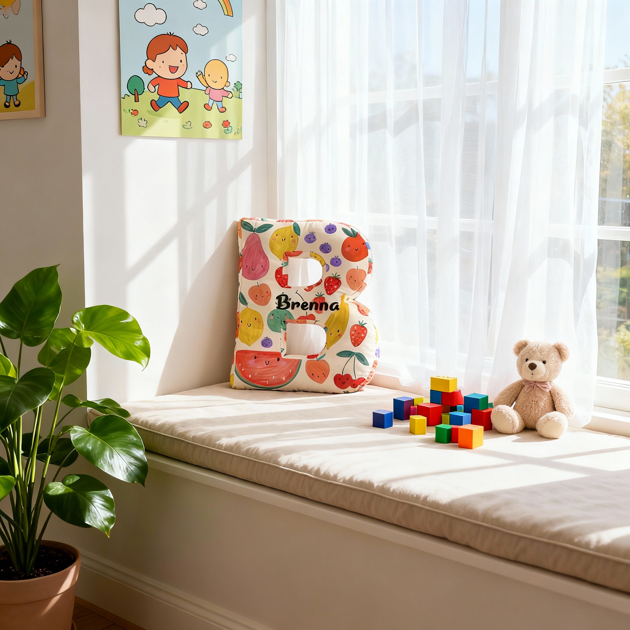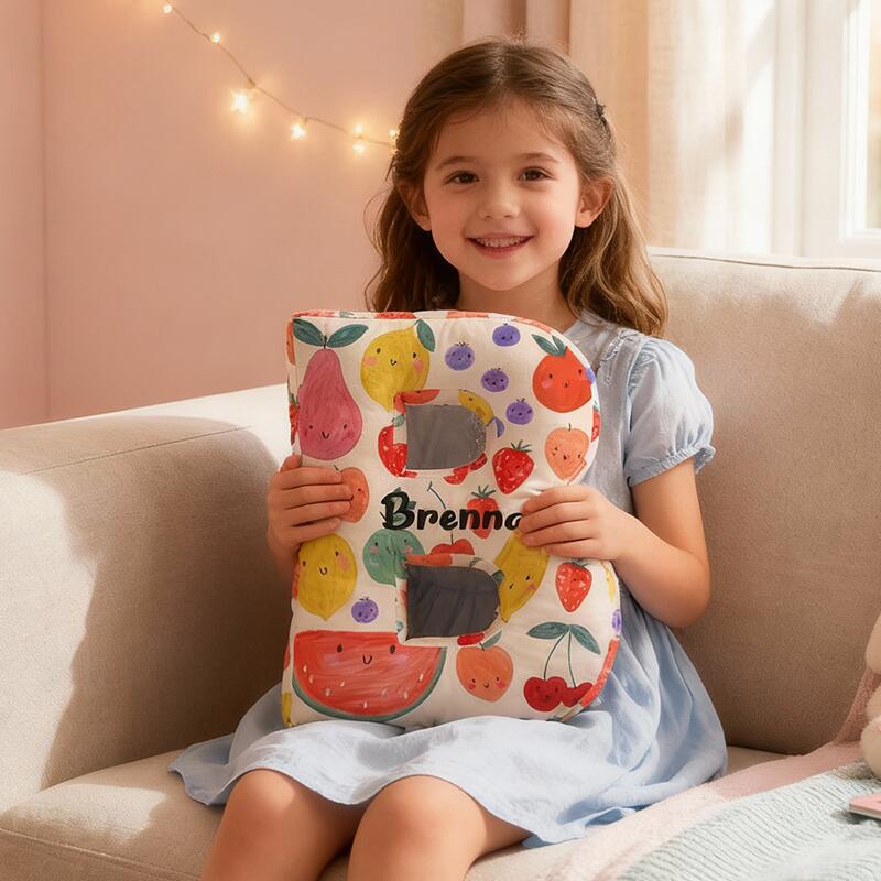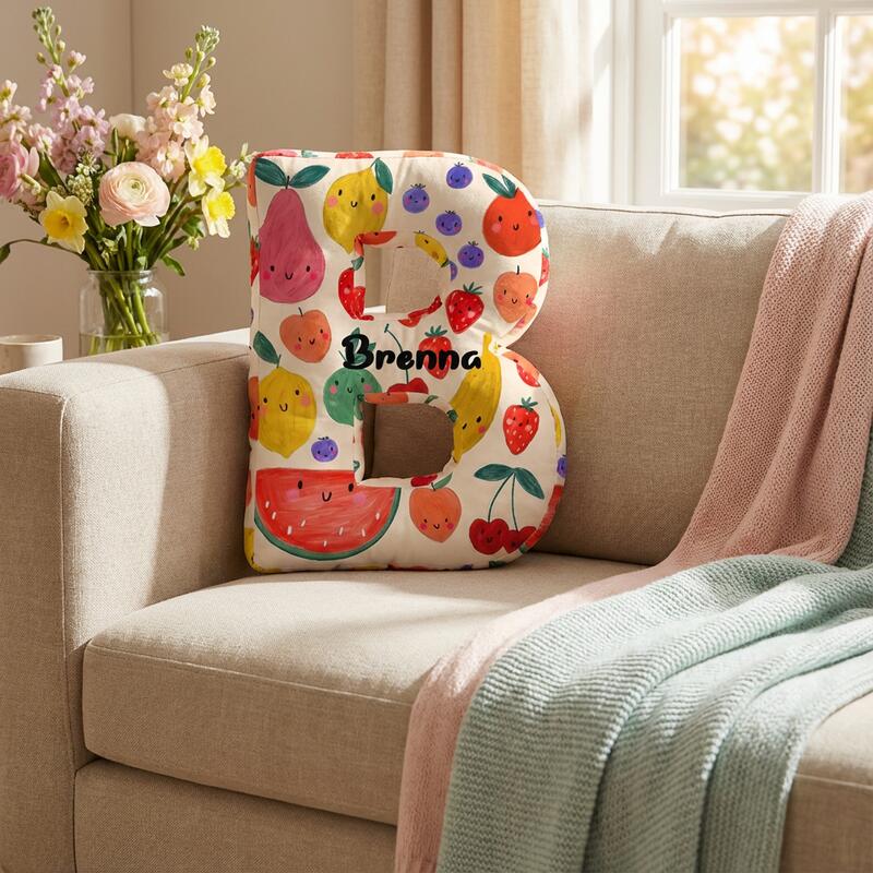 Almohada personalizada con letras de frutas, bonito regalo para niños