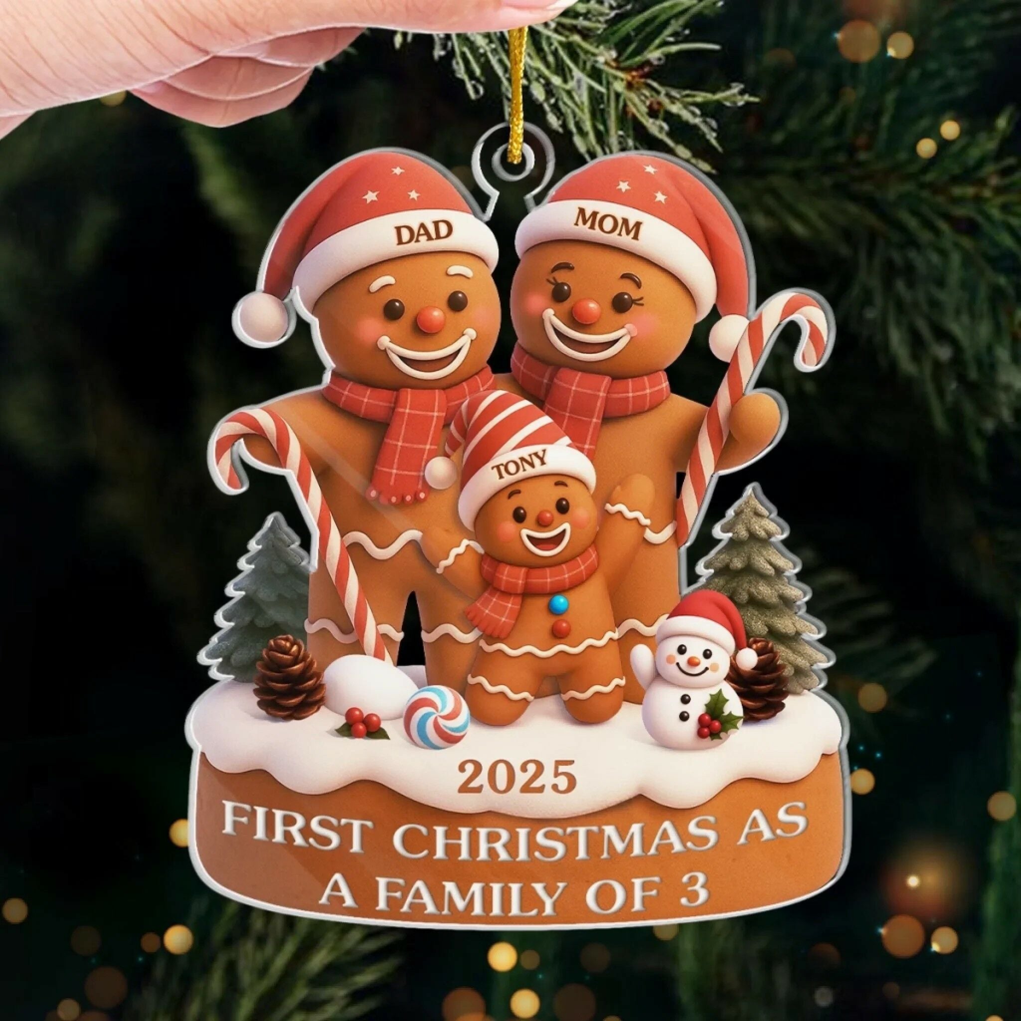 Adornos colgantes familiares de hombrecitos de jengibre personalizados con nombres personalizados para Navidad