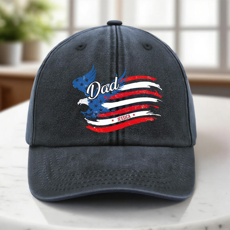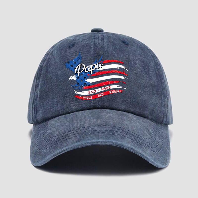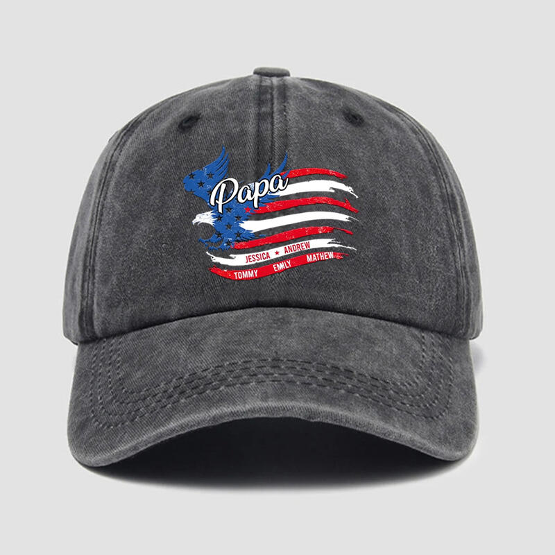 Sombrero personalizado con águila volando y nombres personalizados. Diseño creativo para el 4 de julio. Regalo para la familia.