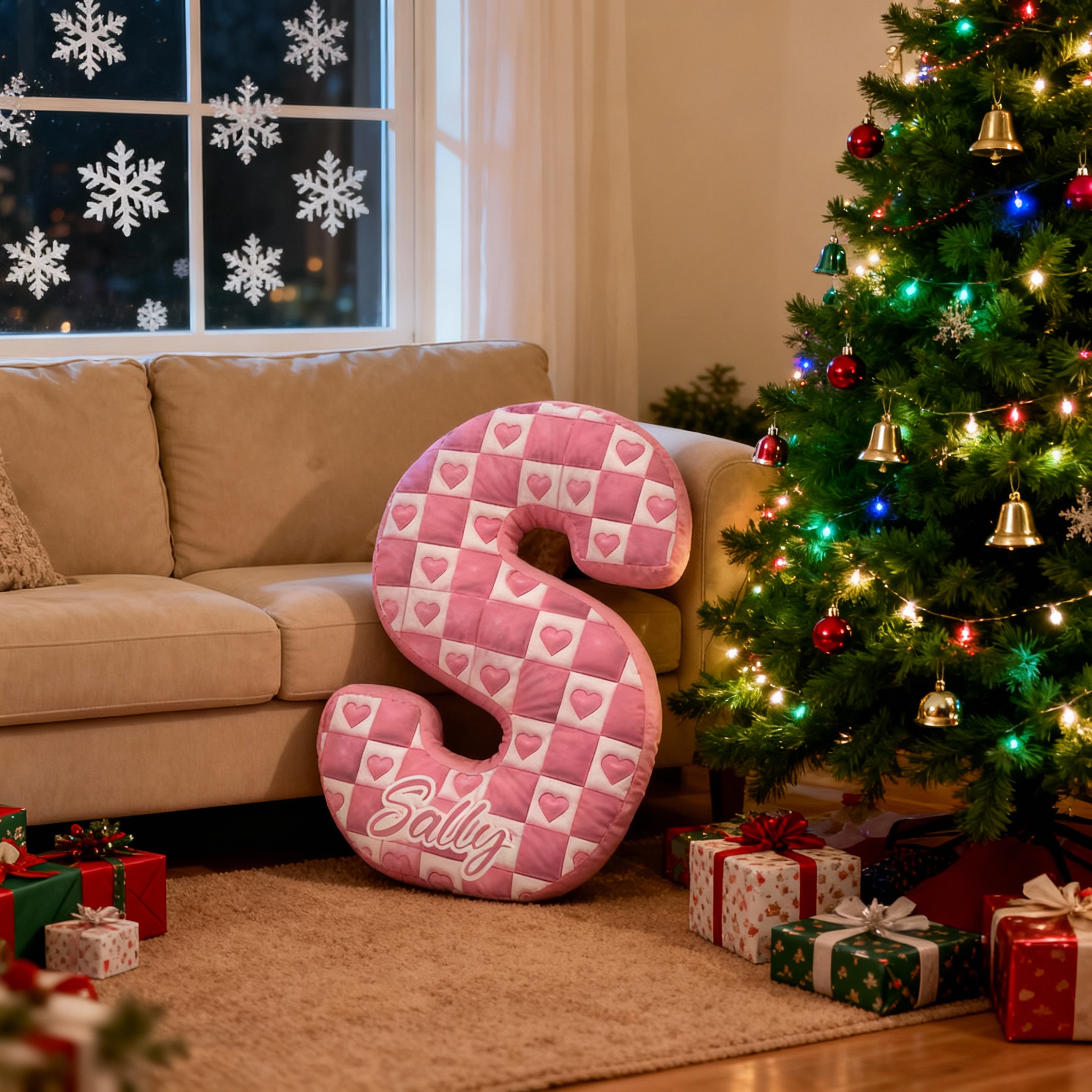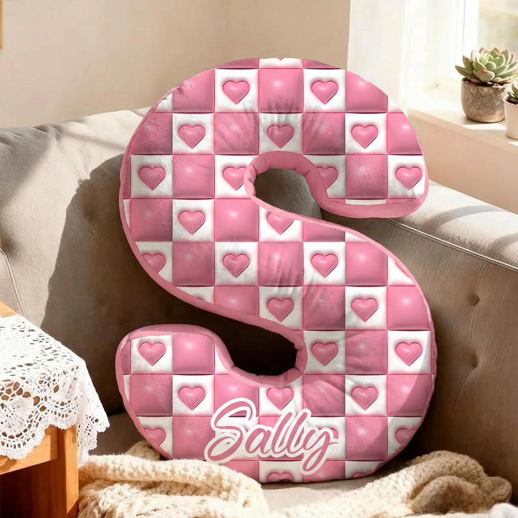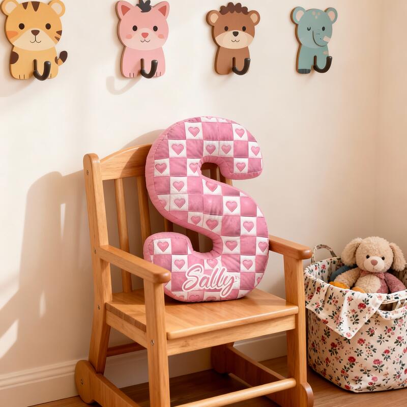 Almohada personalizada con letras a cuadros y corazón, regalo de Navidad para niños