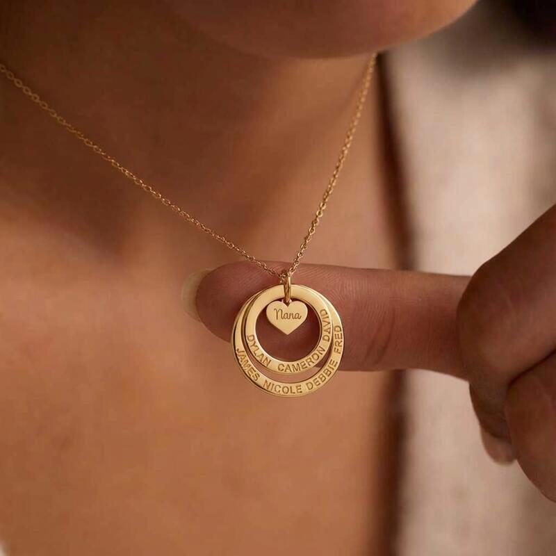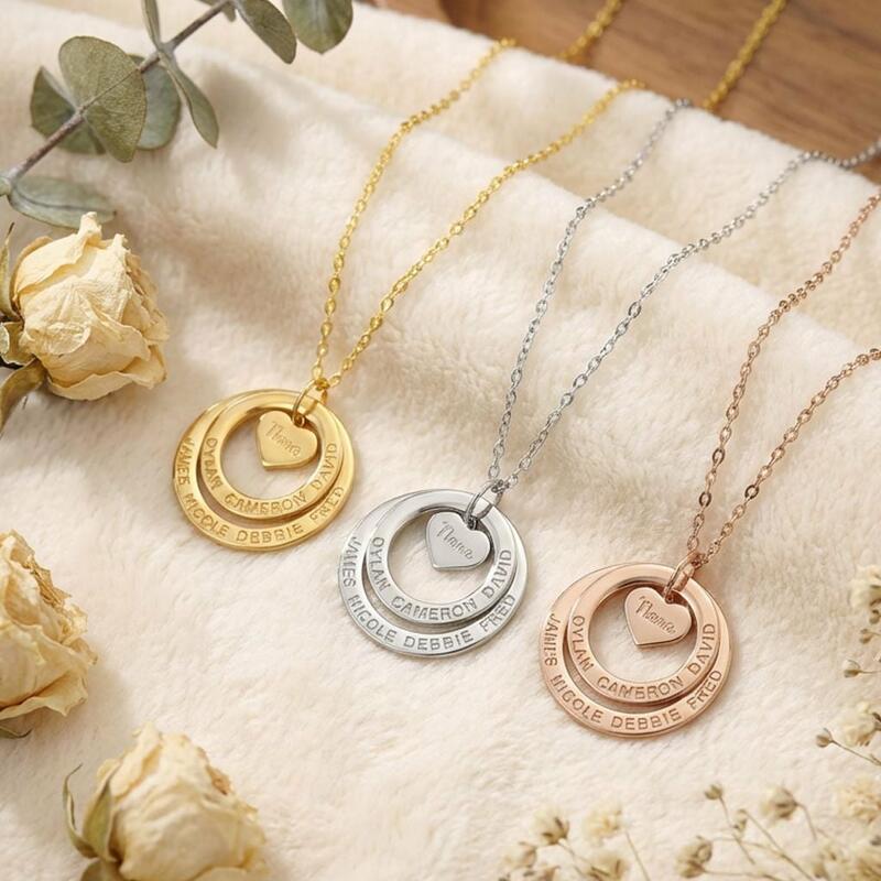 Collar circular personalizado en forma de corazón con nombres de miembros de la familia regalo para Nana