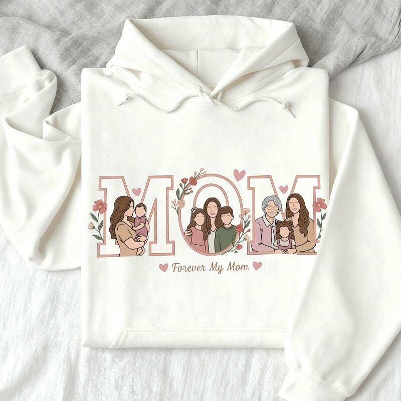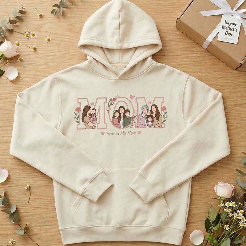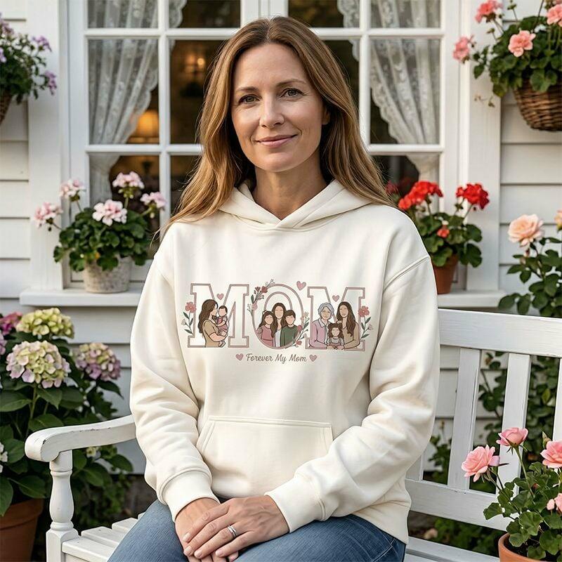 Sudadera con capucha personalizada Fotos personalizadas Diseño de texto floral de mamá regalo atractivo para el Día de la Madre