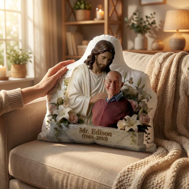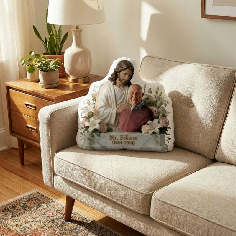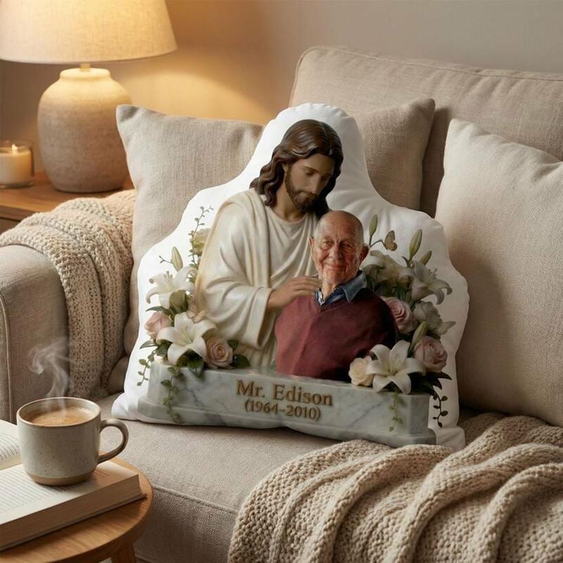 Cojín conmemorativo de Jesús personalizado añade foto regalo de recuerdo para la familia en honor a los seres queridos