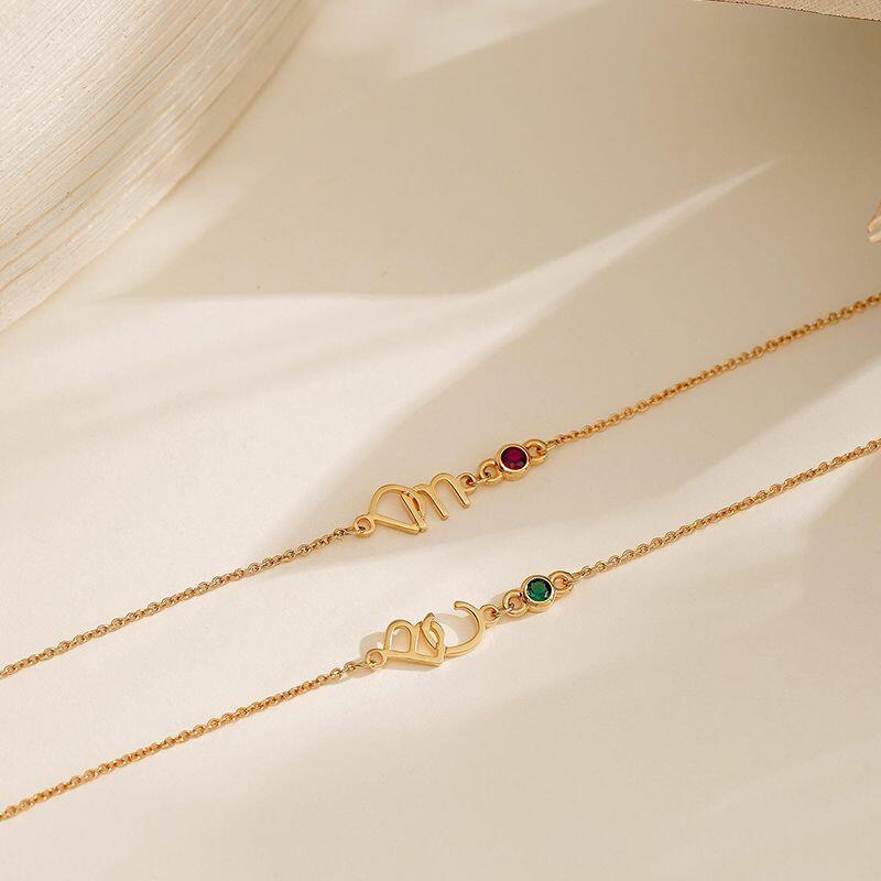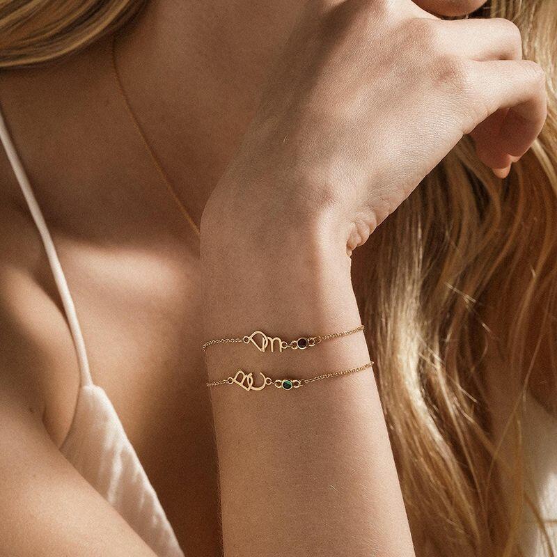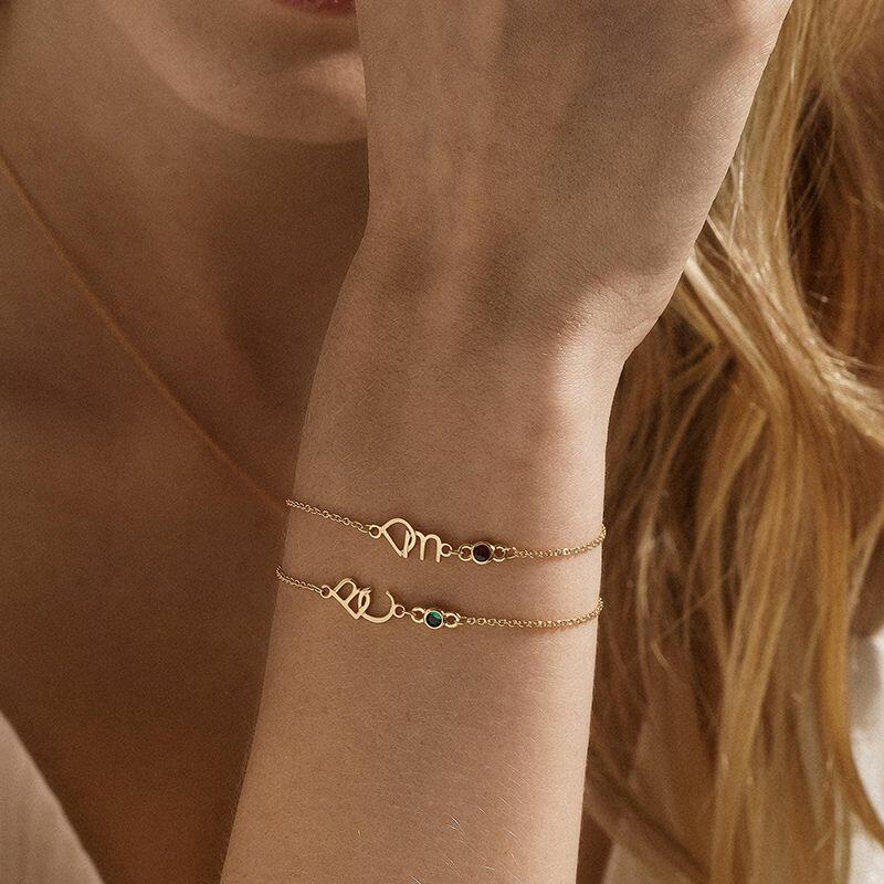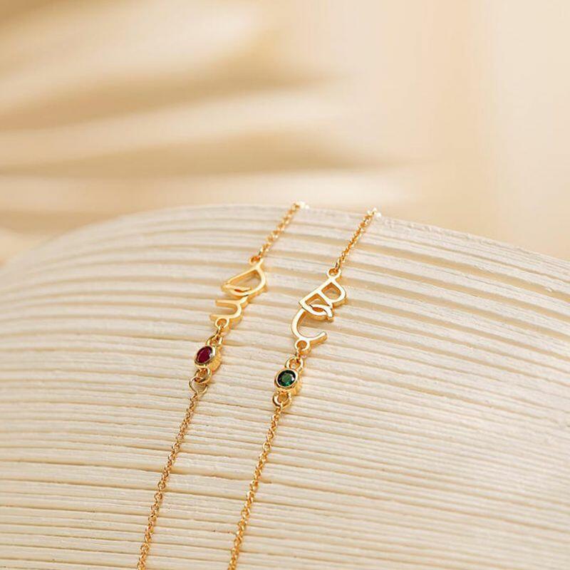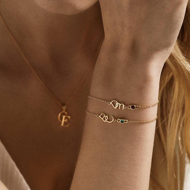 Pulsera de letra personalizada con piedra de nacimiento, regalo romántico para parejas
