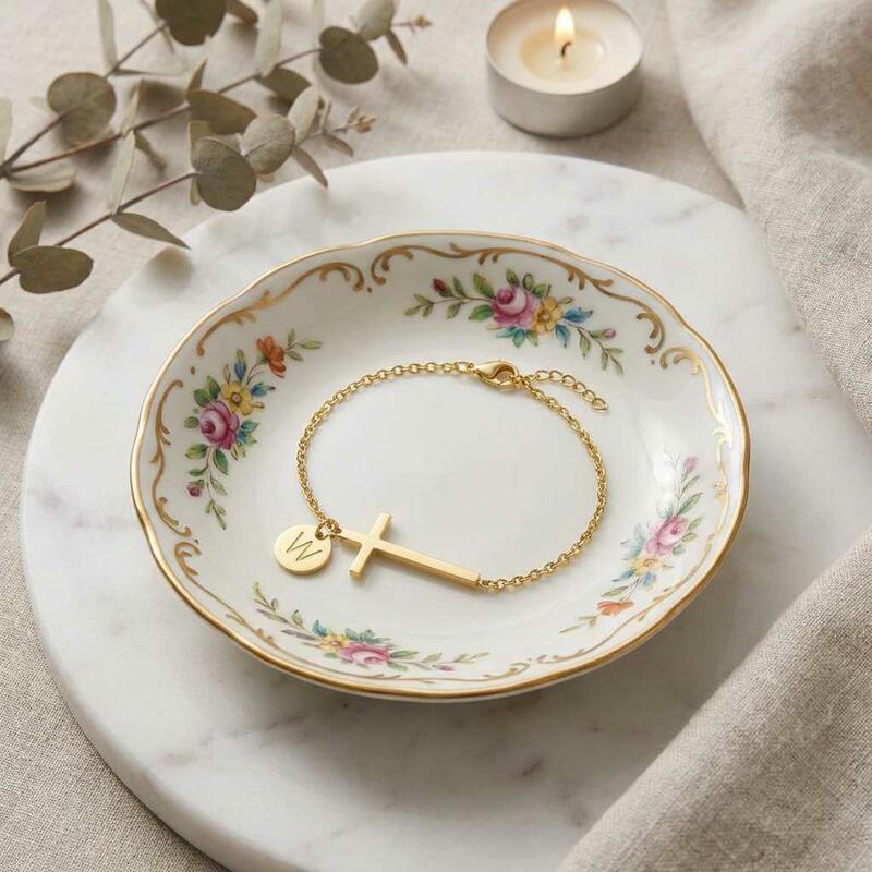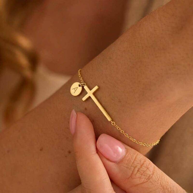 Pulsera con letra personalizada y cruz Un regalo sencillo para chicas