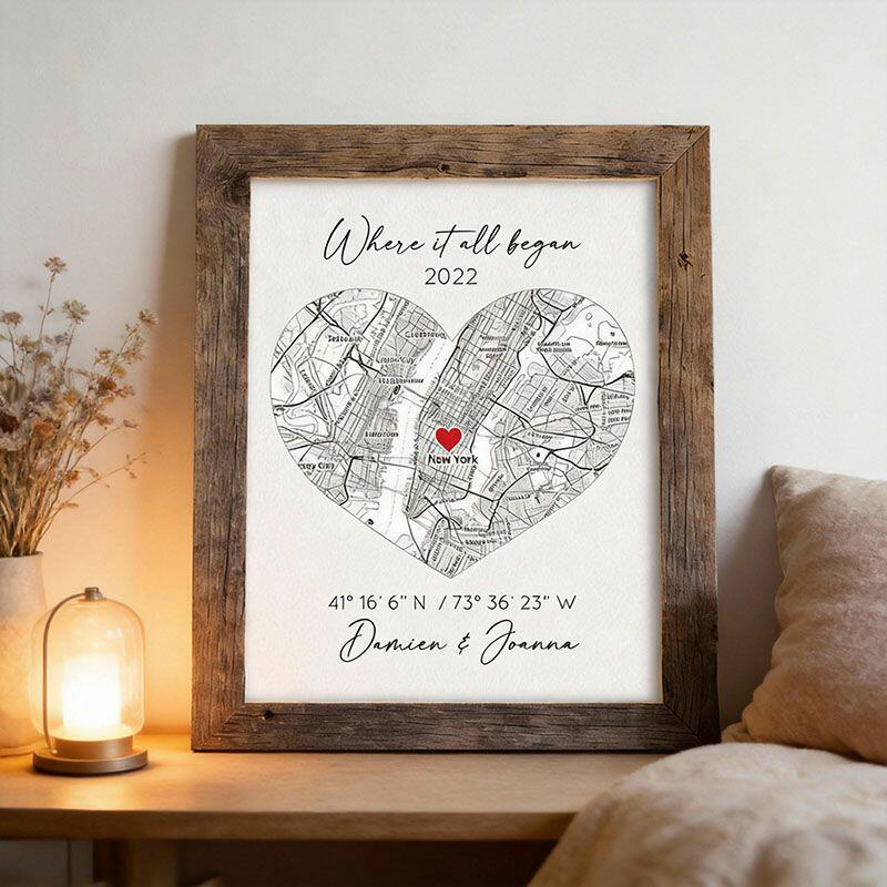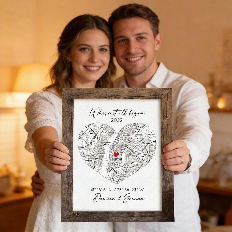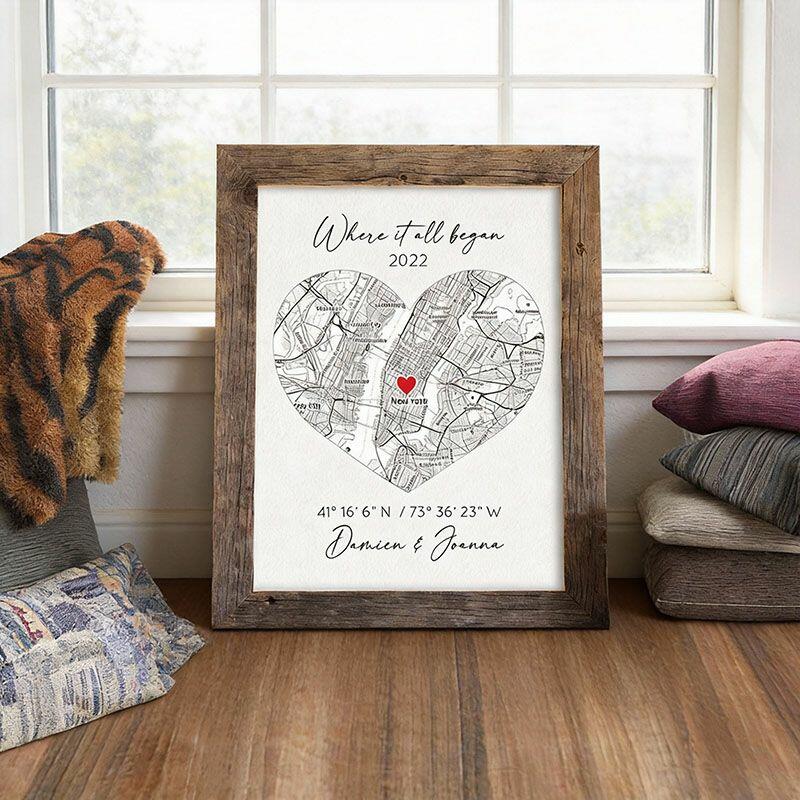 Marco de mapa personalizado con nombre personalizado Regalo genial para parejas