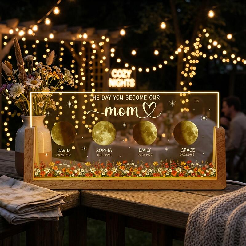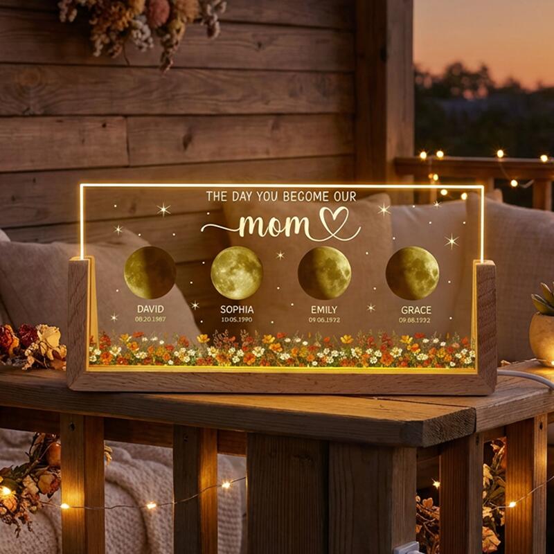 Luz nocturna personalizada con foto de fase lunar el día en que te conviertes en nuestra mamá Gran regalo para el Día de la Madre
