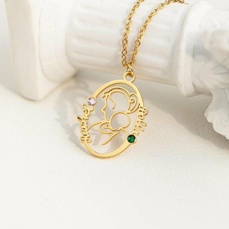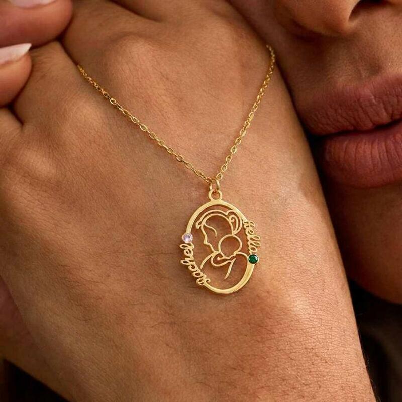 Collar personalizado para madre y bebé con nombre personalizado y regalo del Día de la Madre con piedra natal