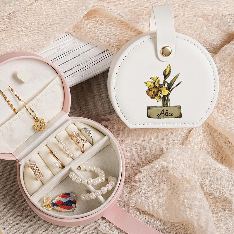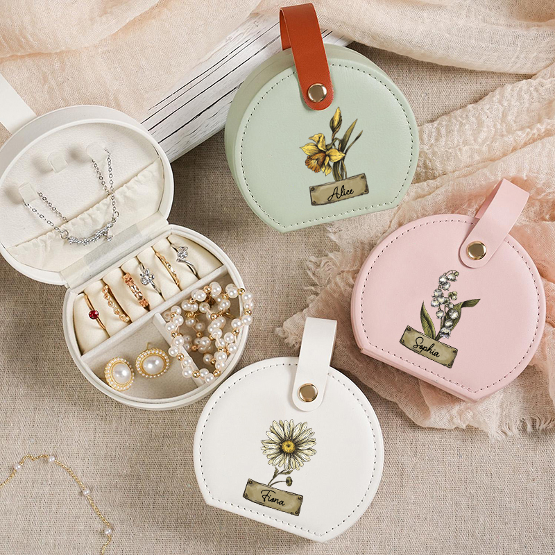 Joyero con nombre personalizado y flor de nacimiento personalizada, regalo clásico para cumpleaños