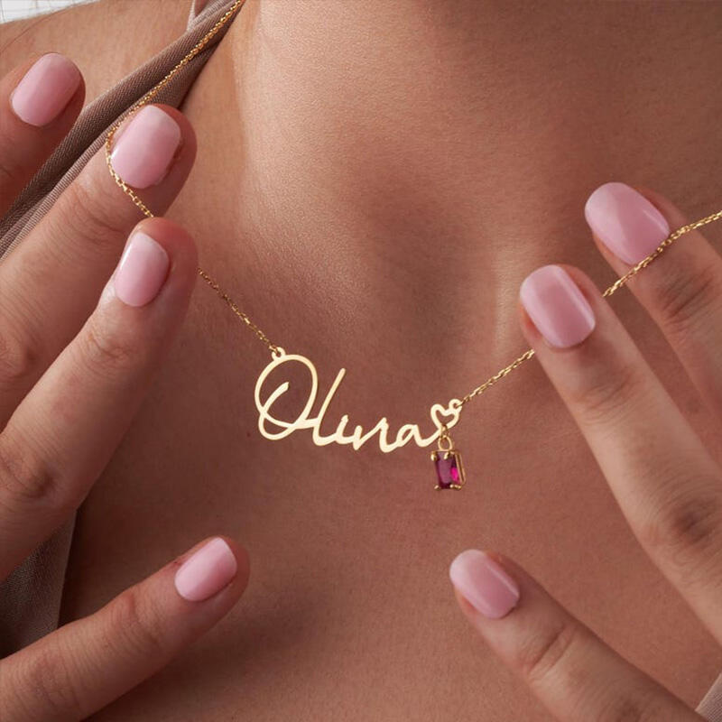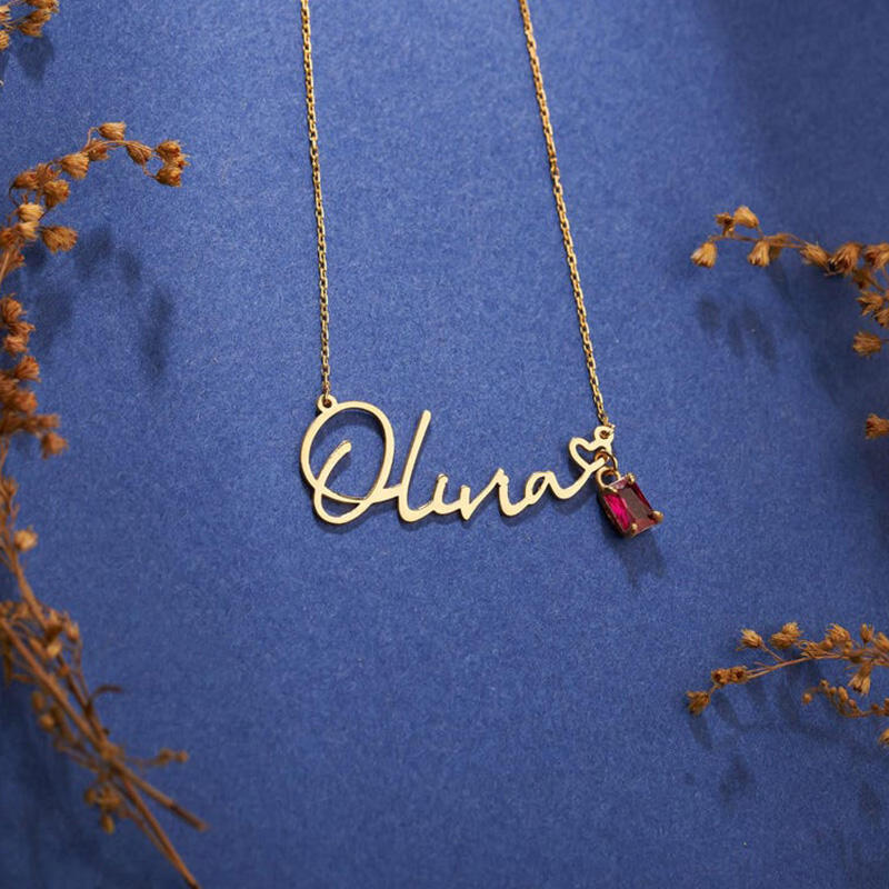 Collar con nombre personalizado y piedra de nacimiento, regalo de cumpleaños sencillo