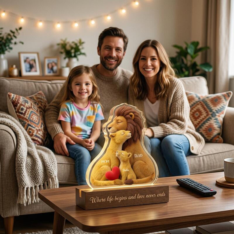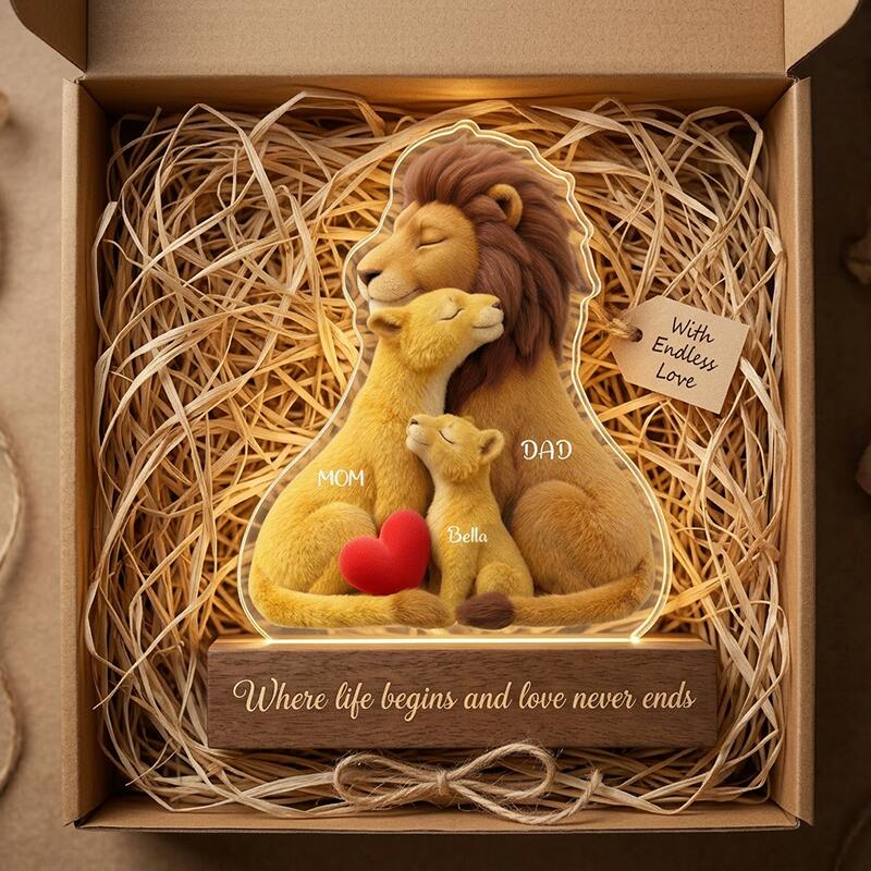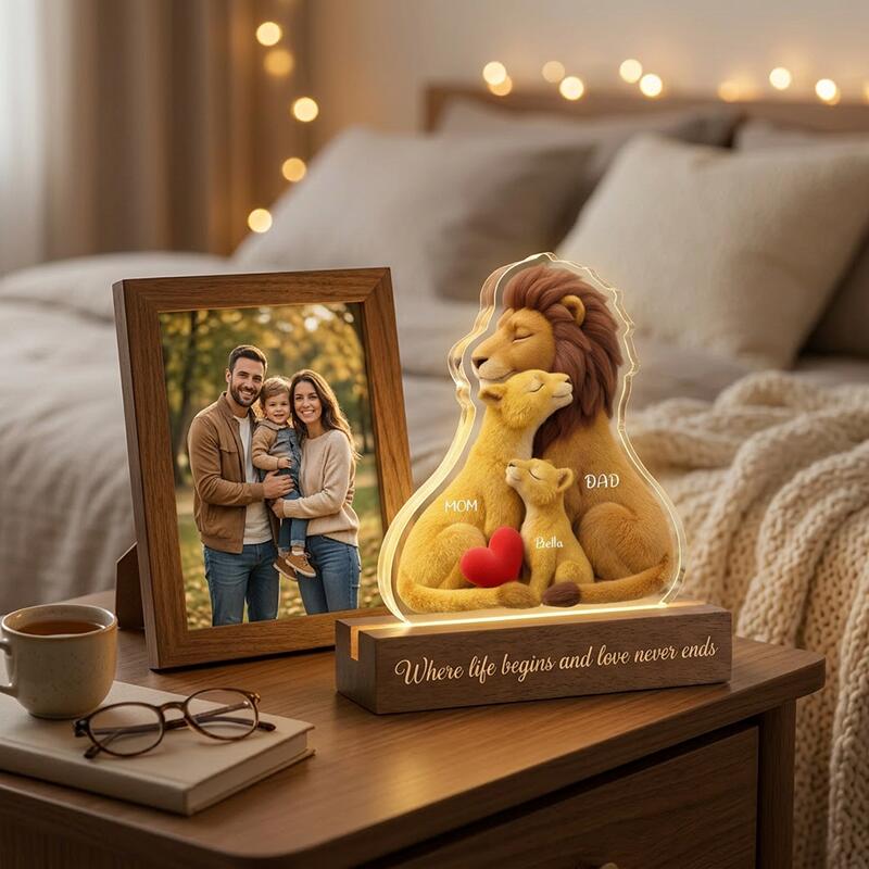 Luz nocturna con nombre personalizado y diseño de familia de leones el mejor regalo para mamá