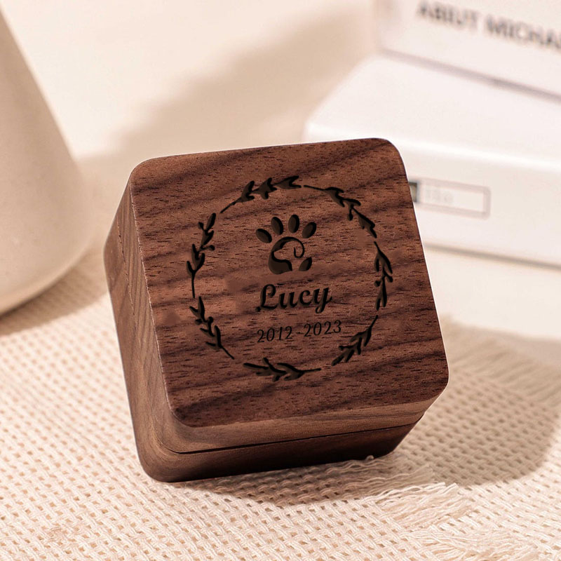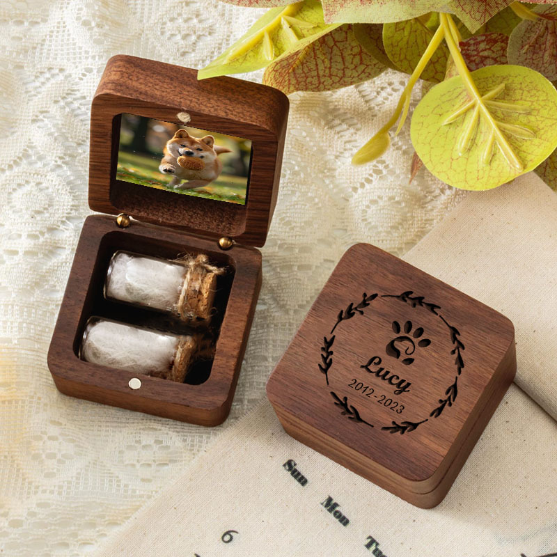 Caja de recuerdos de pelo de mascota con nombre personalizado y patrón de guirnalda, regalo perfecto para amantes de las mascotas