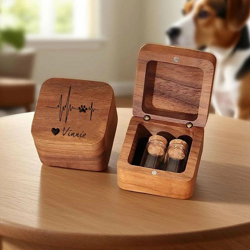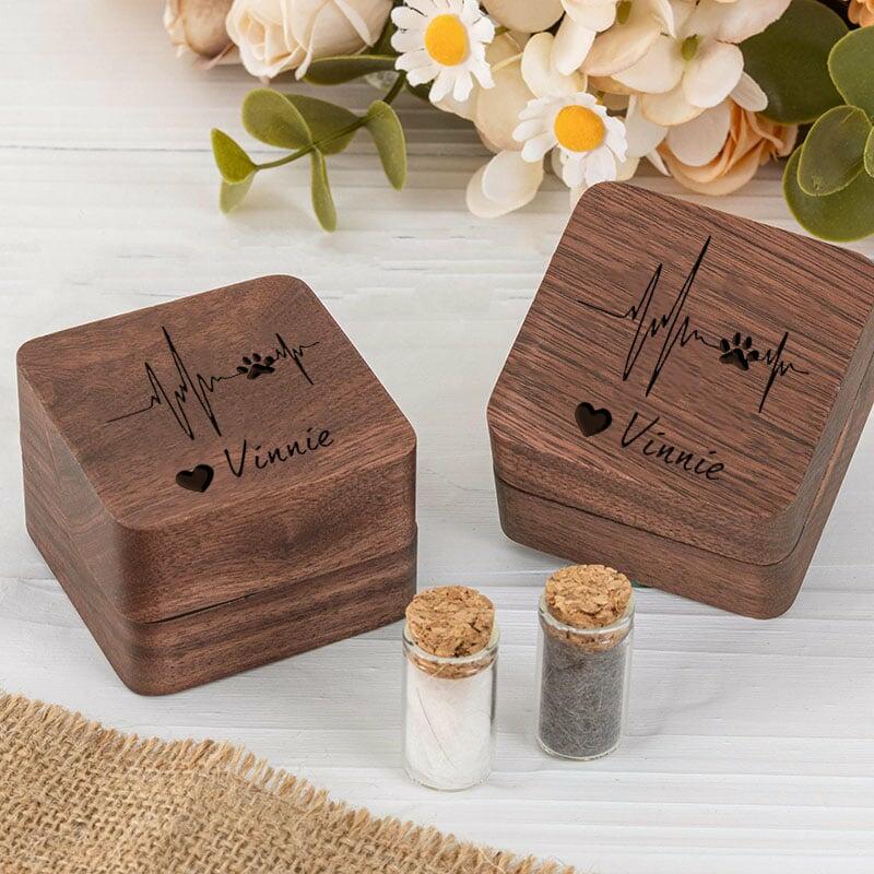 Caja de recuerdo de pelo de mascota con nombre personalizado y estampado de latidos de corazón, regalo creativo para amantes de las mascotas