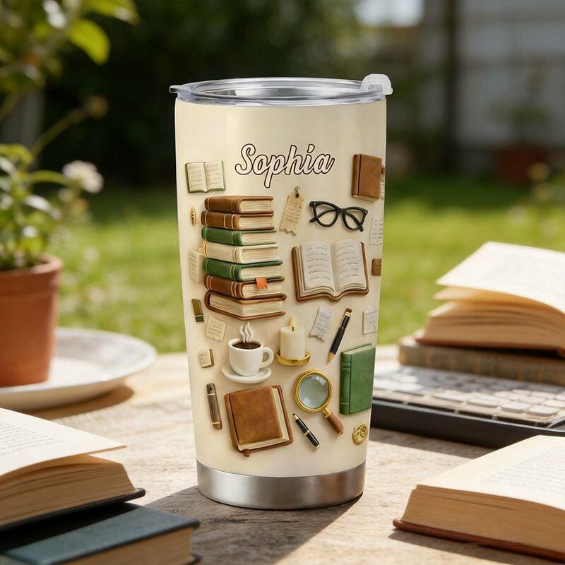 Vaso con nombre personalizado regalo elegante para los amantes de los libros