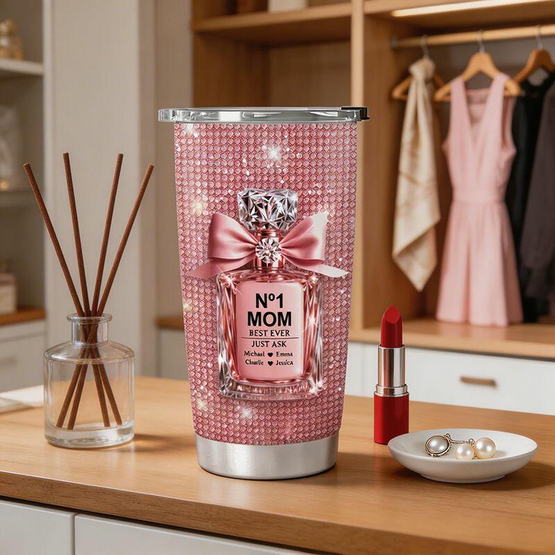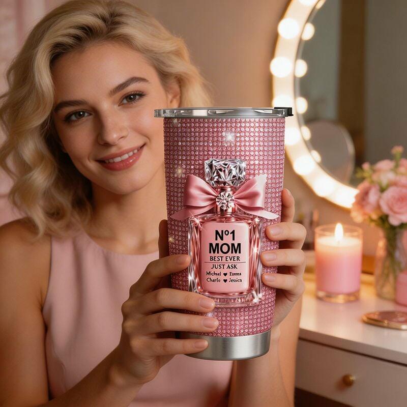 Vaso con nombre personalizado y diseño de perfume brillante hermoso regalo para el Día de la Madre