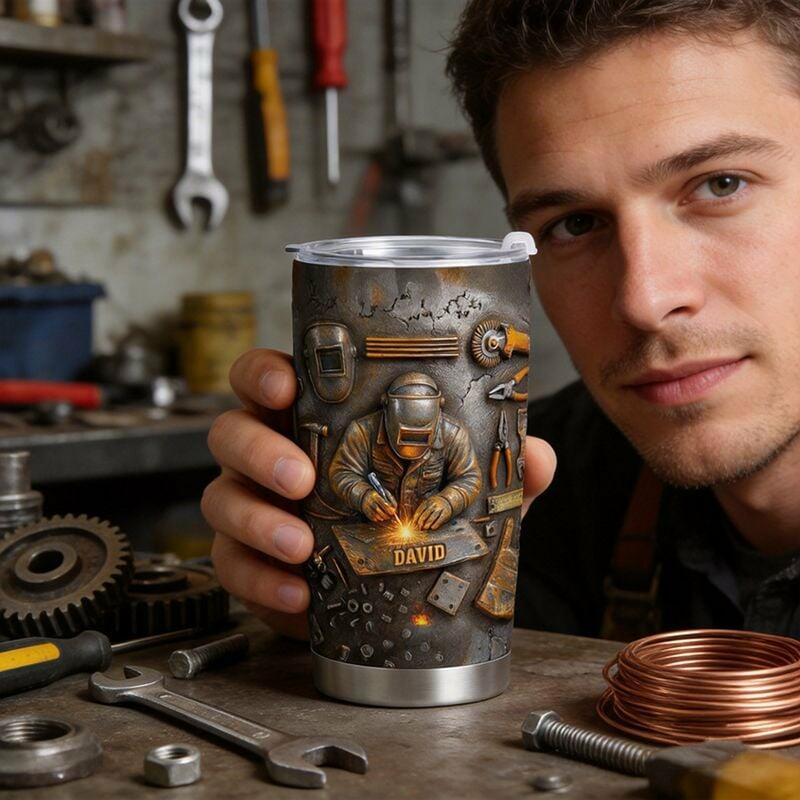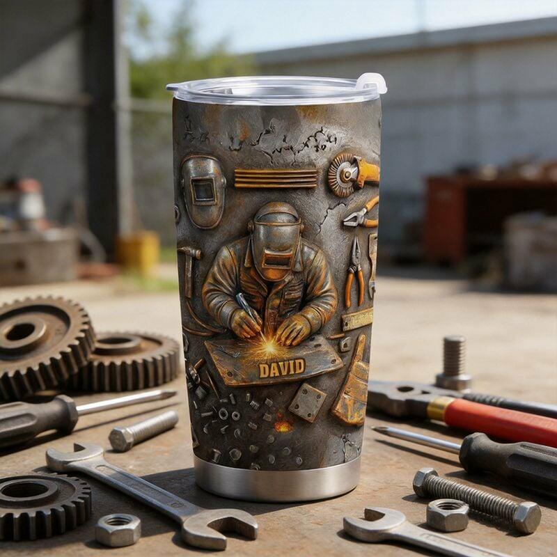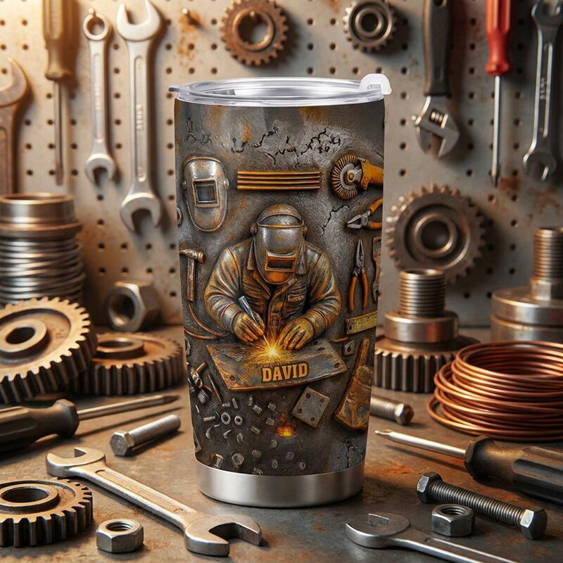 Vaso con nombre personalizado con tema de soldadura regalo práctico para la familia