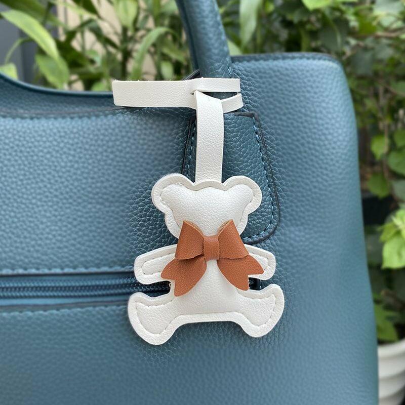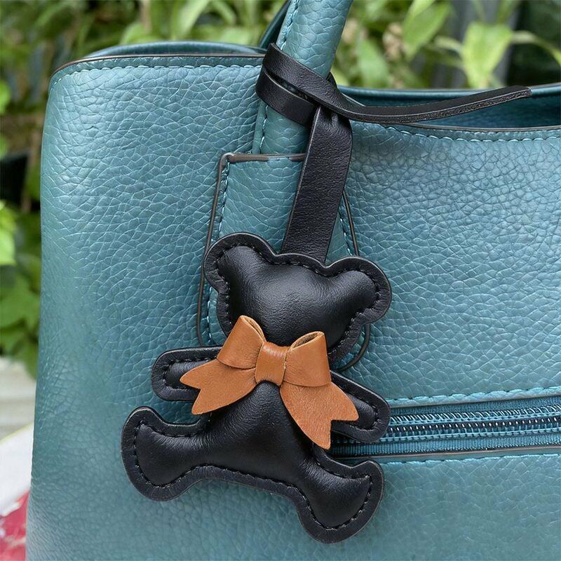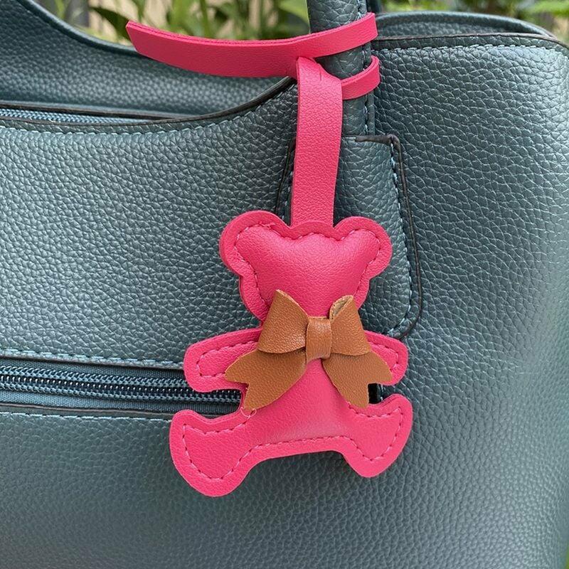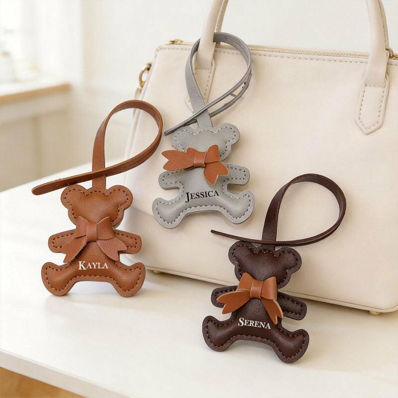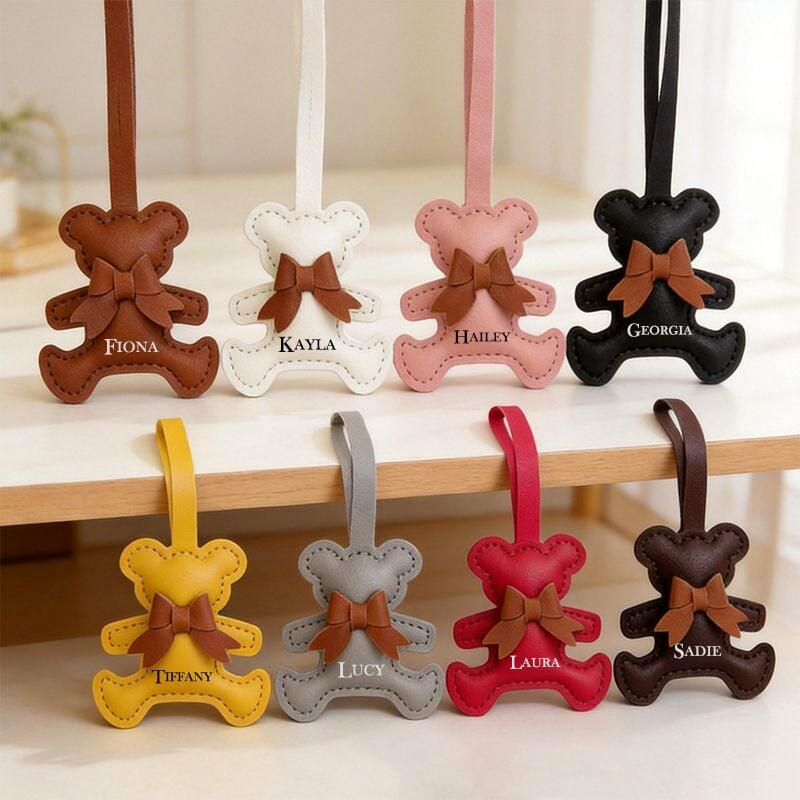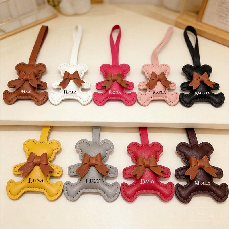 Adorno personalizado para bolso de cuero PU con diseño de lazo y oso con nombre personalizado Un adorable regalo para la familia