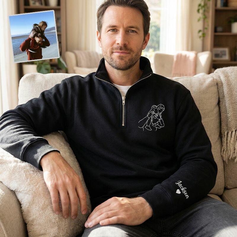 Sudadera personalizada con cremallera de un cuarto y bordado con foto personalizada el regalo perfecto para el Día del Padre