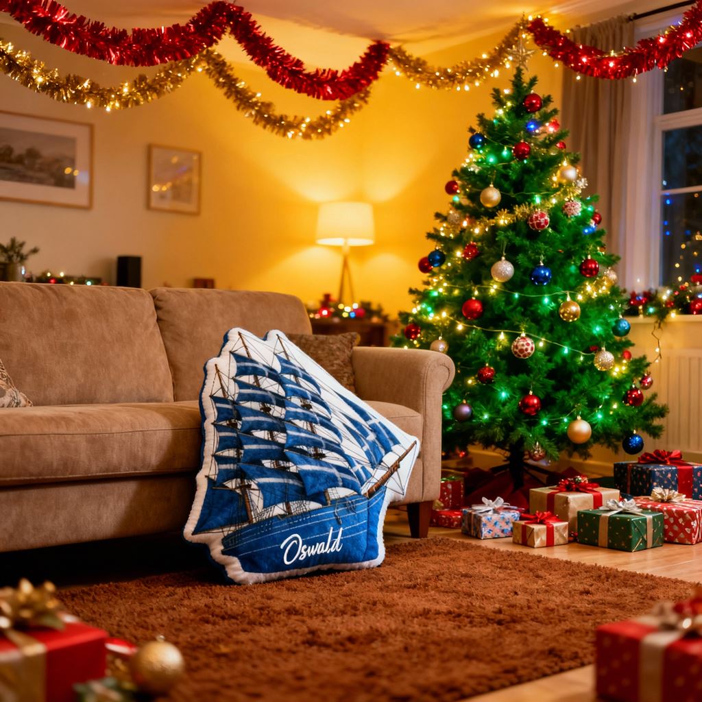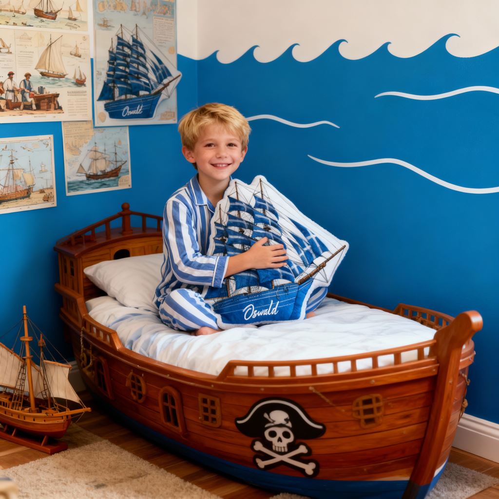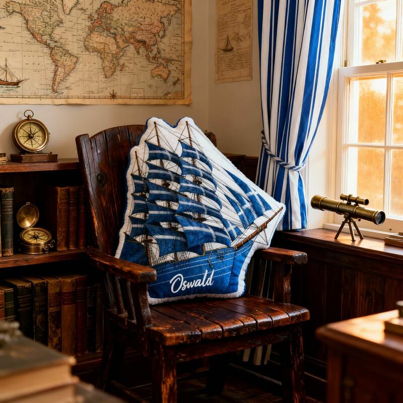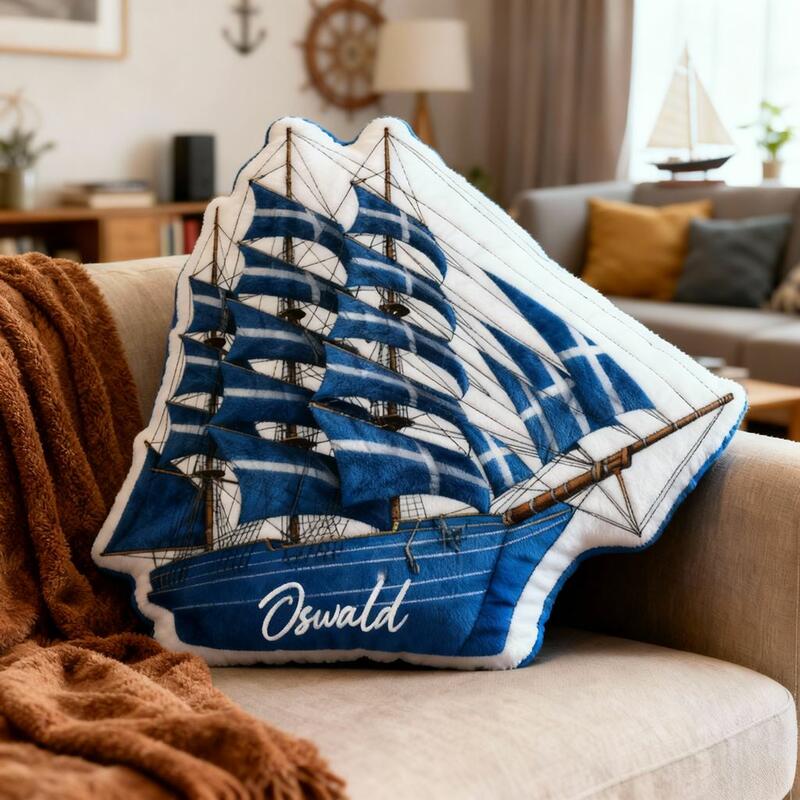 Almohada de velero personalizada con nombre y dibujos animados, regalo de Navidad para niños