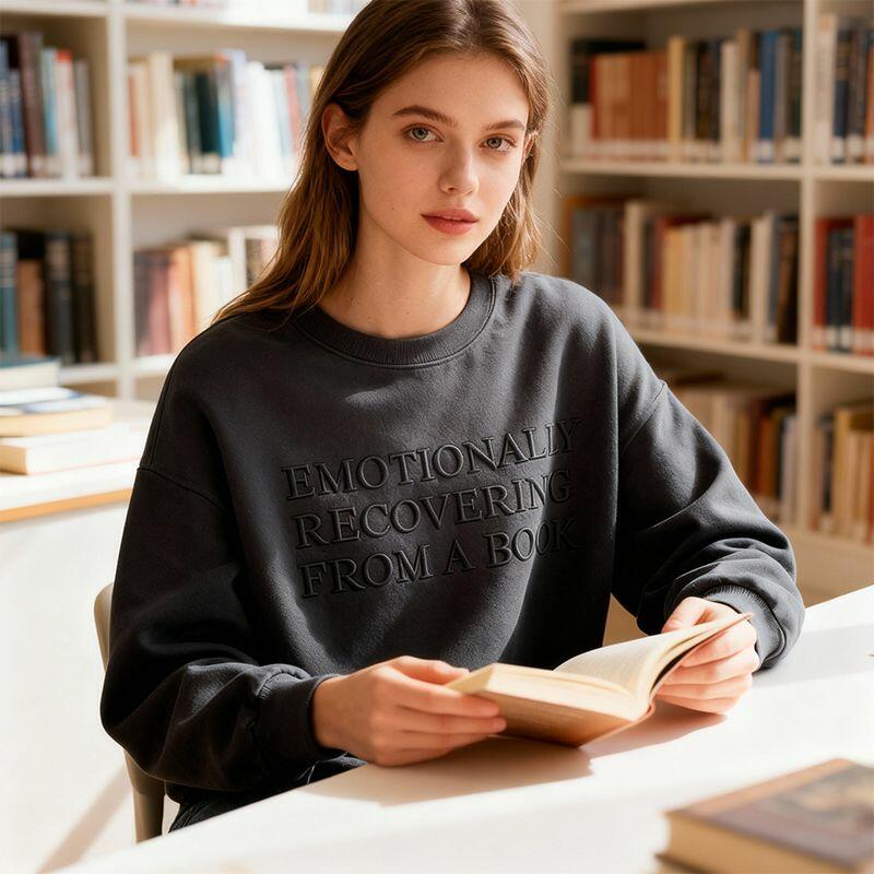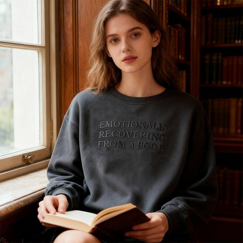 Sudadera personalizada bordada con diseño de lectura divertido y literario, regalo perfecto para amantes de los libros.