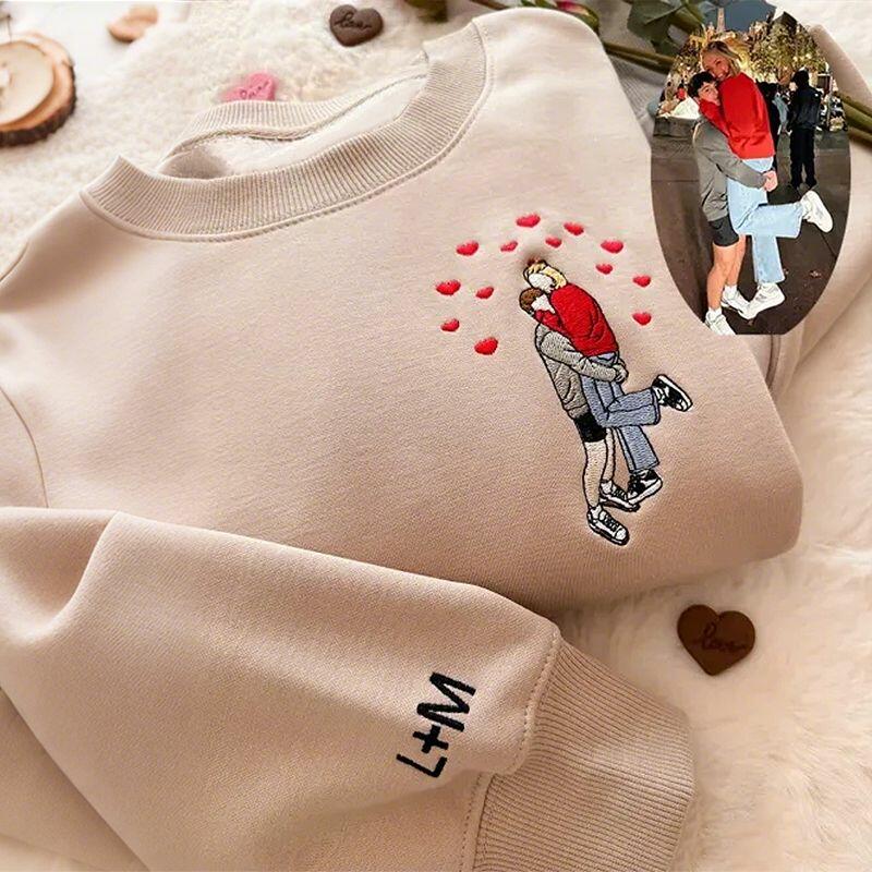 Sudadera personalizada bordada para pareja con fotos y corazones amantes Regalo perfecto para San Valentín