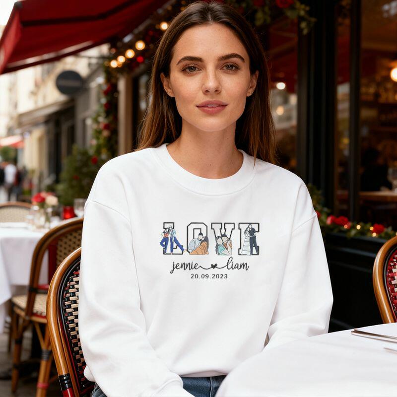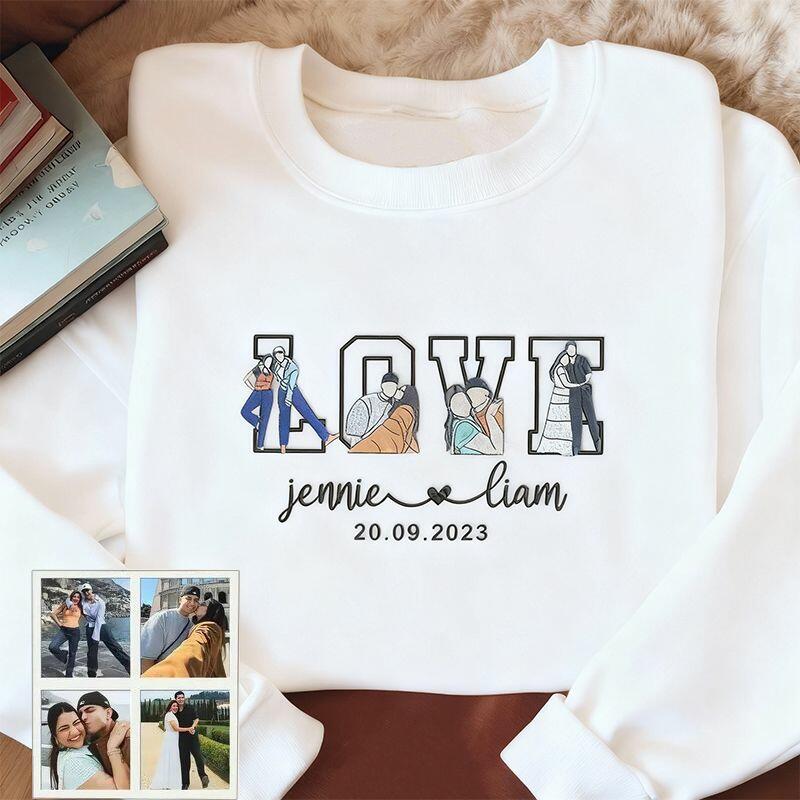 Sudadera personalizada con fotos bordadas, diseño de amor, regalo atractivo para San Valentín para parejas.