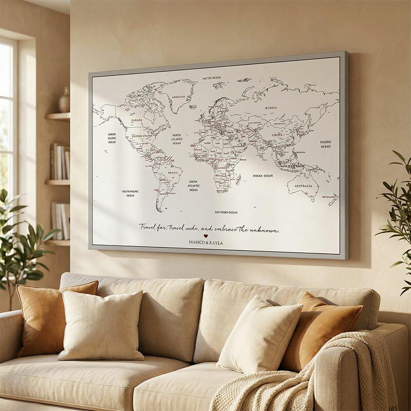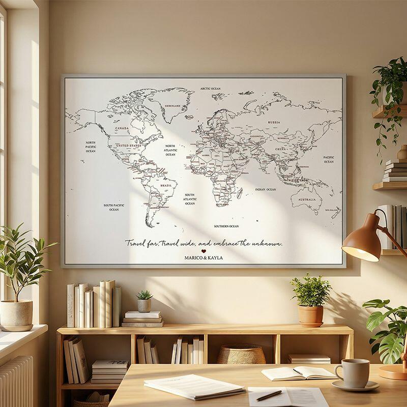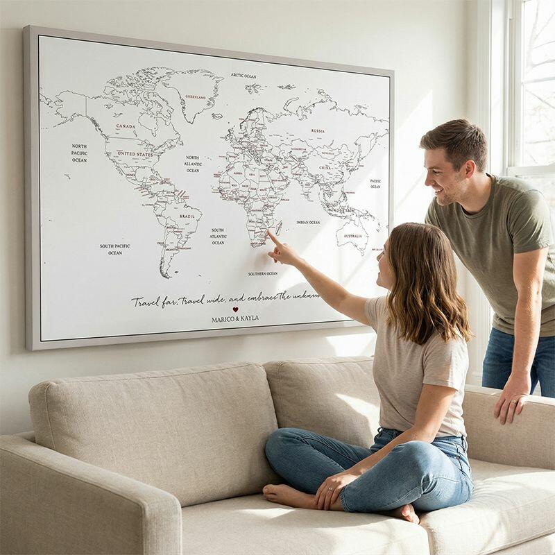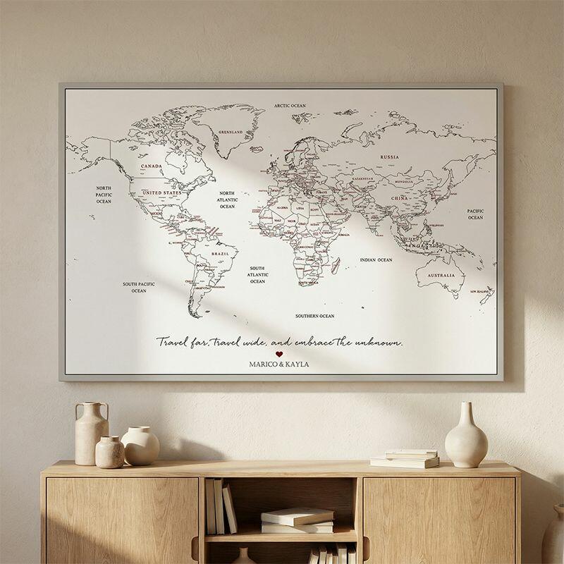 Mapa de viaje personalizado con lienzo arte mural con pinza mapa del mundo regalo perfecto para parejas que viajan