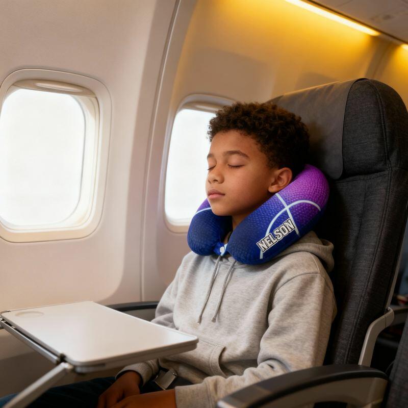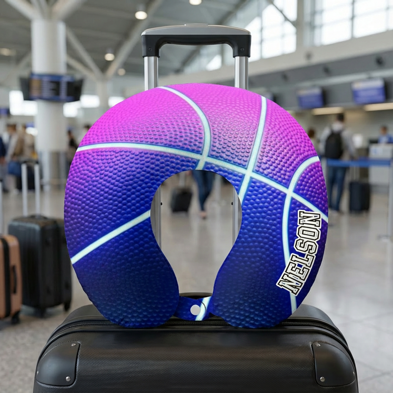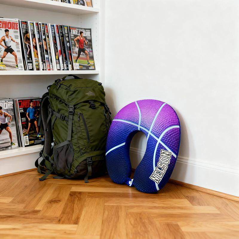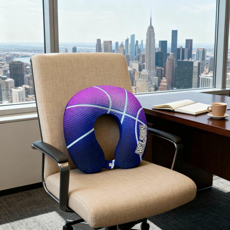 Almohada de cuello personalizada en forma de U con diseño de textura de baloncesto morado, regalo genial para él