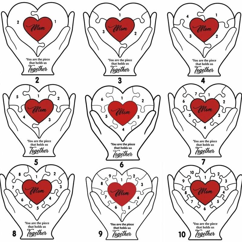Rompecabezas de madera personalizado en forma de corazón Regalo especial para el día de la madre