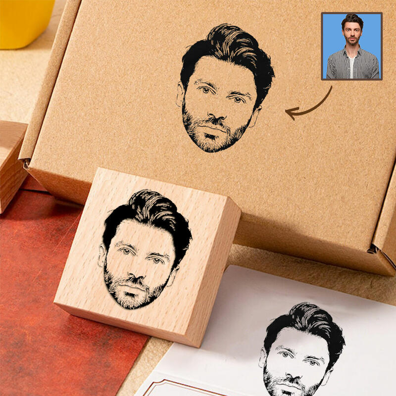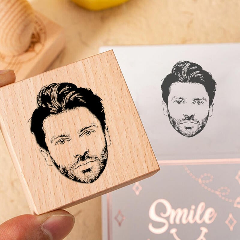 Sello de madera personalizado con retrato personalizado, foto de cara, regalo especial para amigos