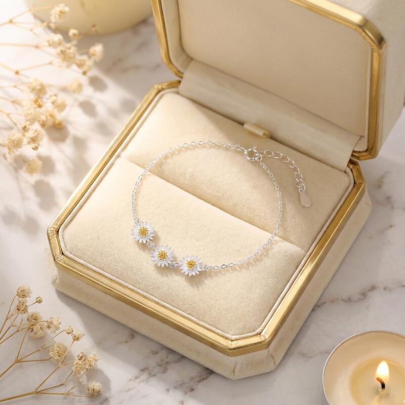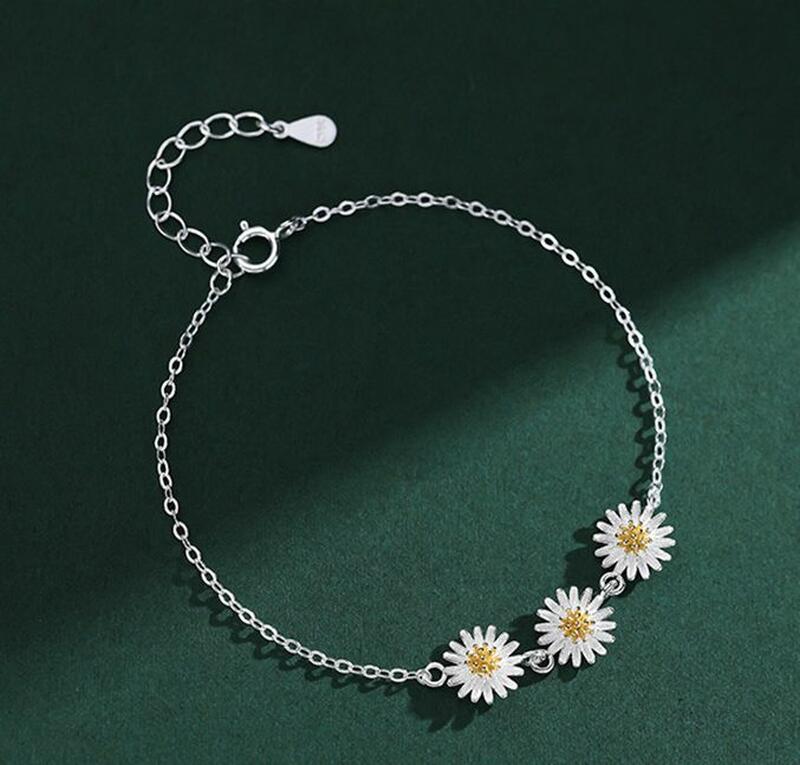 Pulsera de plata de ley S925 con margaritas regalo sencillo para ella